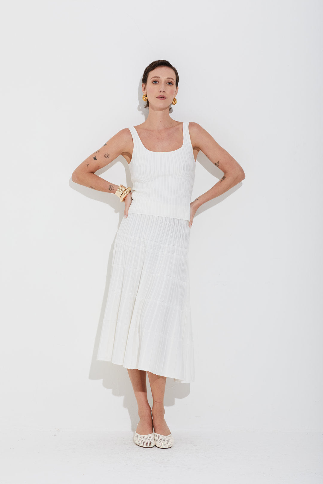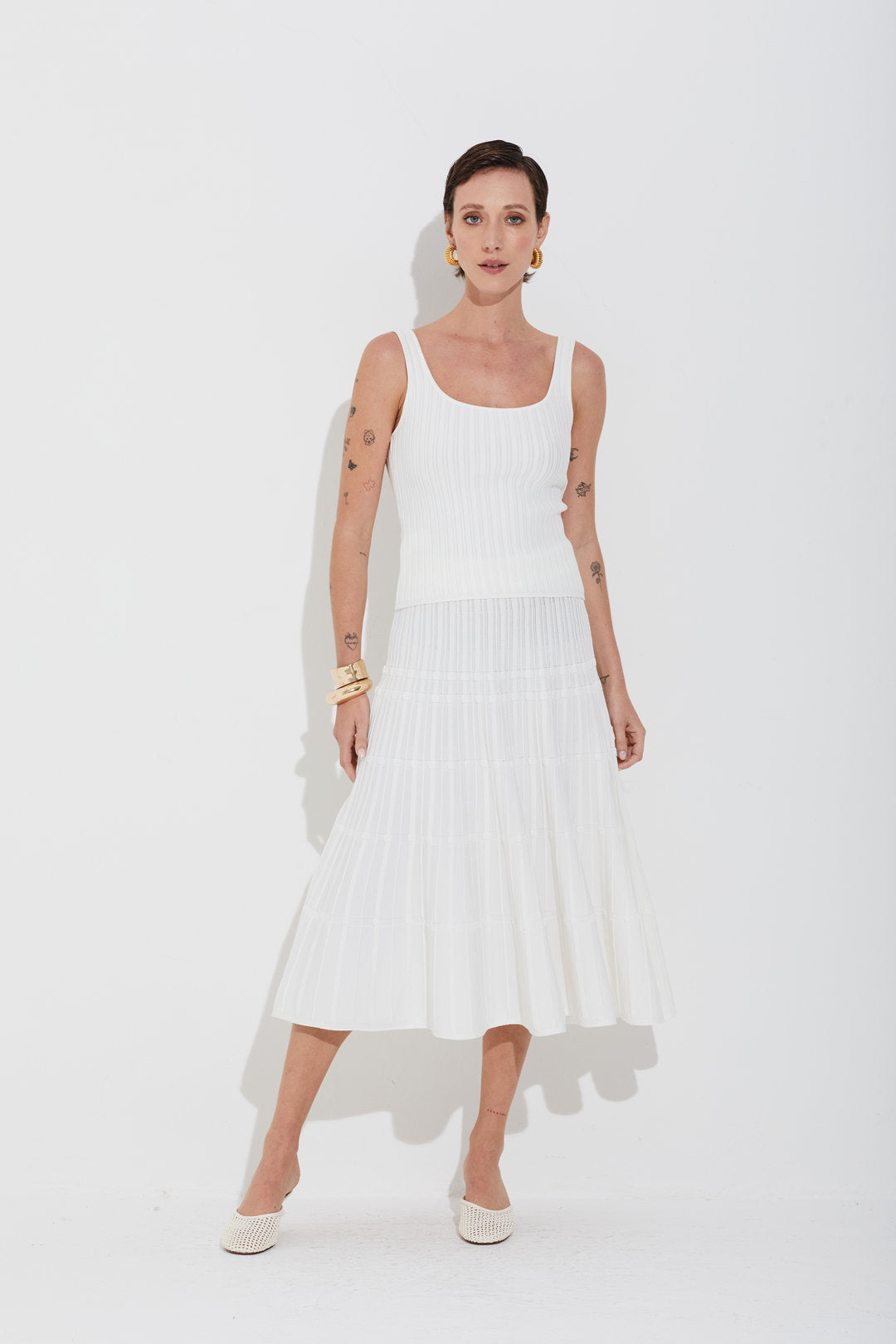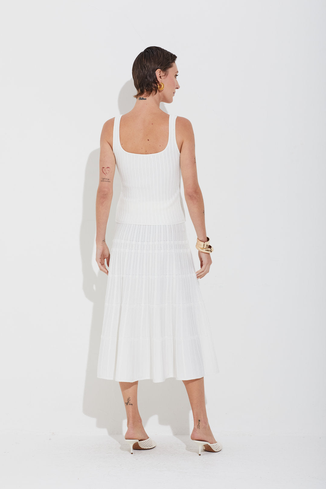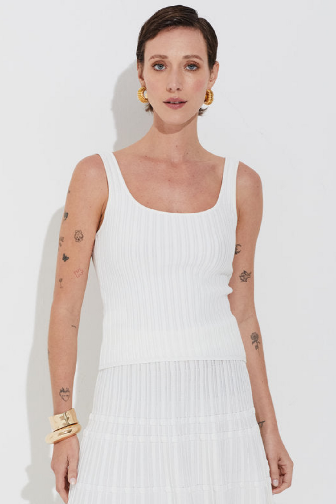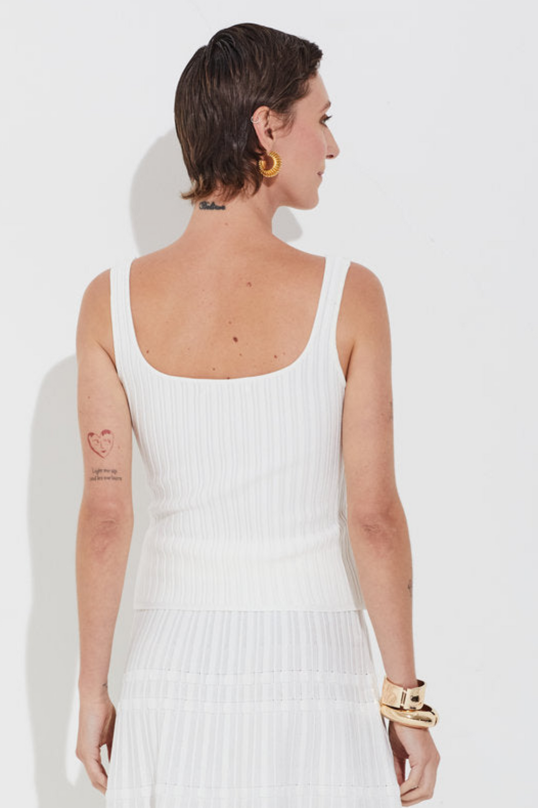 OUTRAS CORES:: Regata Em Tricot Canelado Bolinha Off White