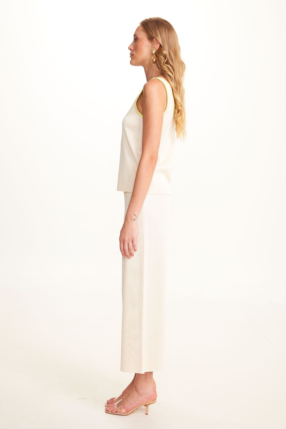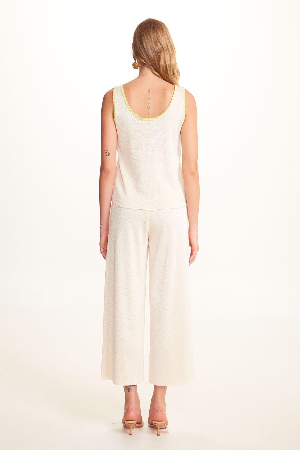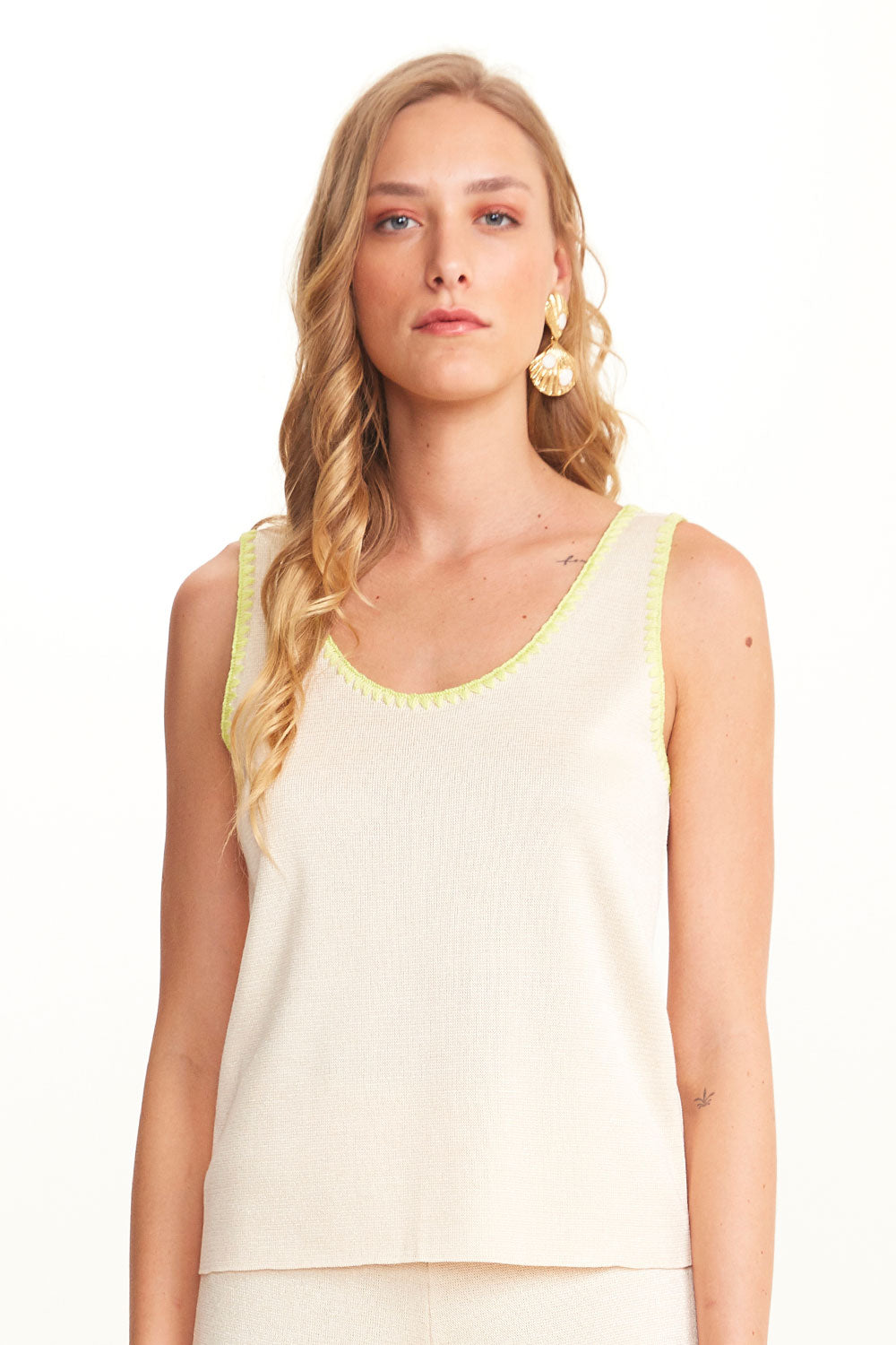 Regata Em Tricot Com Acabamento Bordado Verde Maçã
