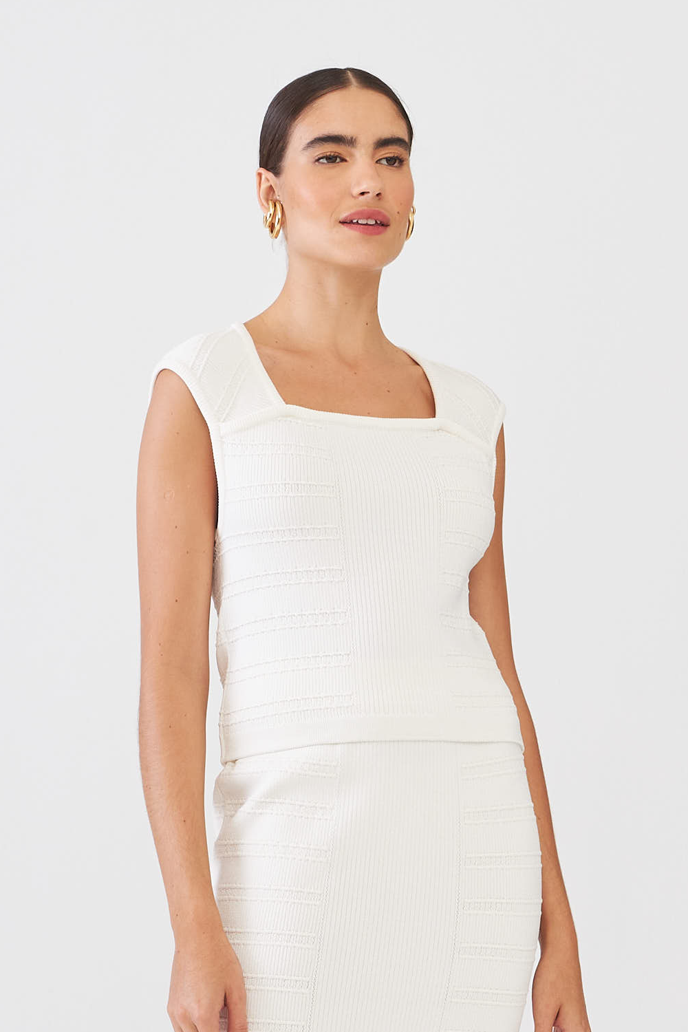 Esta regata é confeccionada em tricot com nervuras adicionando textura ao visual. Além disso, também possui alças largas. O conforto e a modelagem ajudam a valorizar o corpo, sendo o shape mais justo. Ideal para compor looks elegantes e confortáveis durante o dia ou a noite. A peça perfeita para adicionar ao seu guarda-roupa!