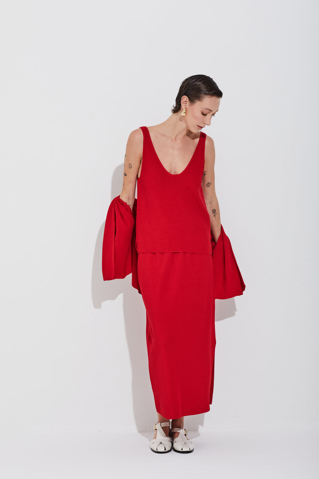 OUTRAS CORES:: Regata Em Tricot Piquet Tomate