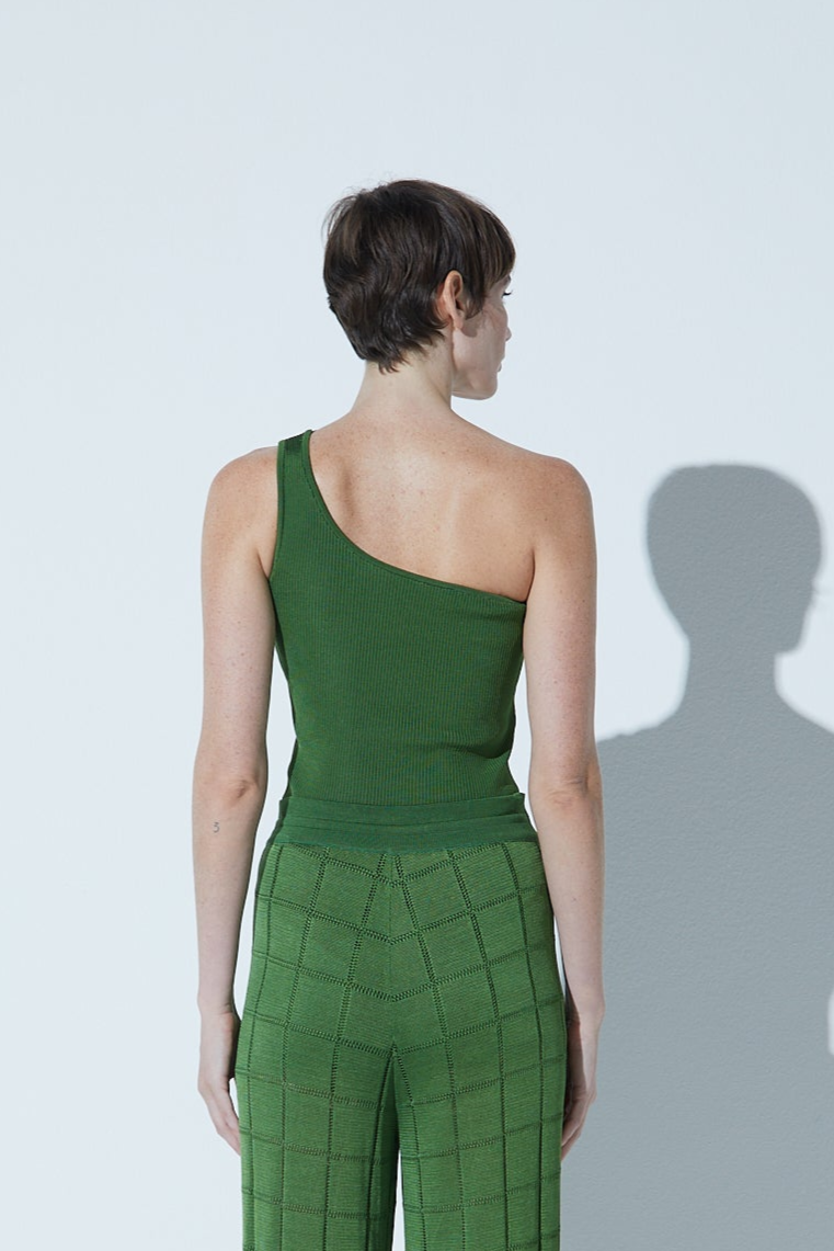 Regata Em Tricot Um Ombro Só Rayon Verde