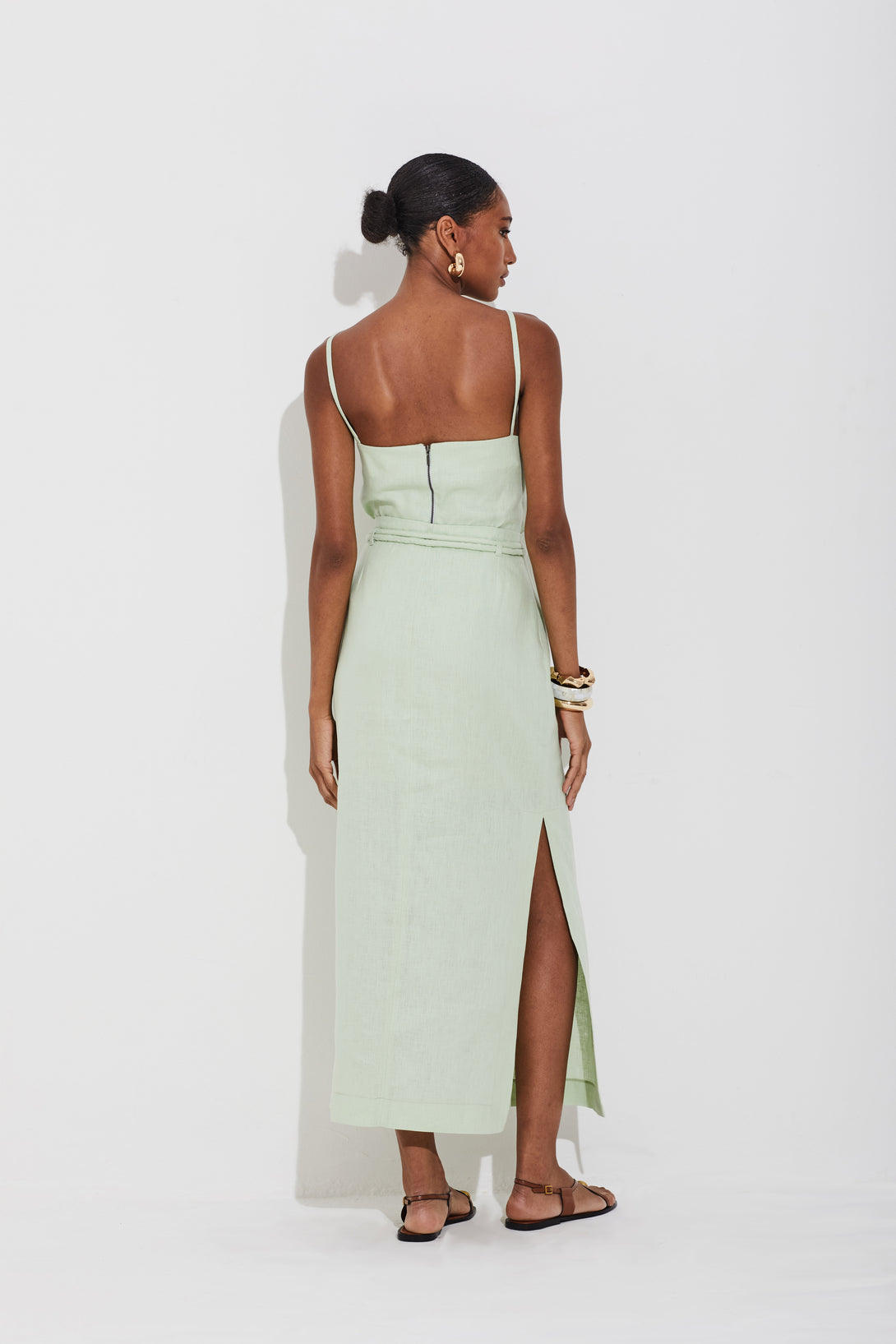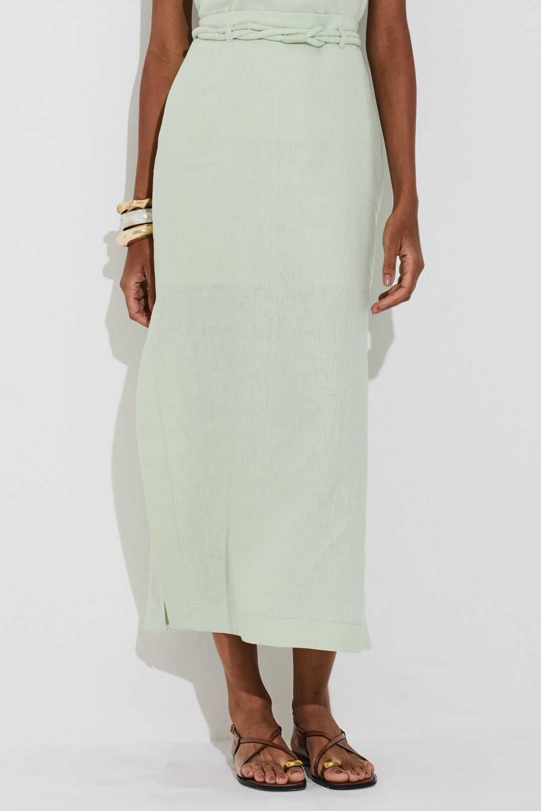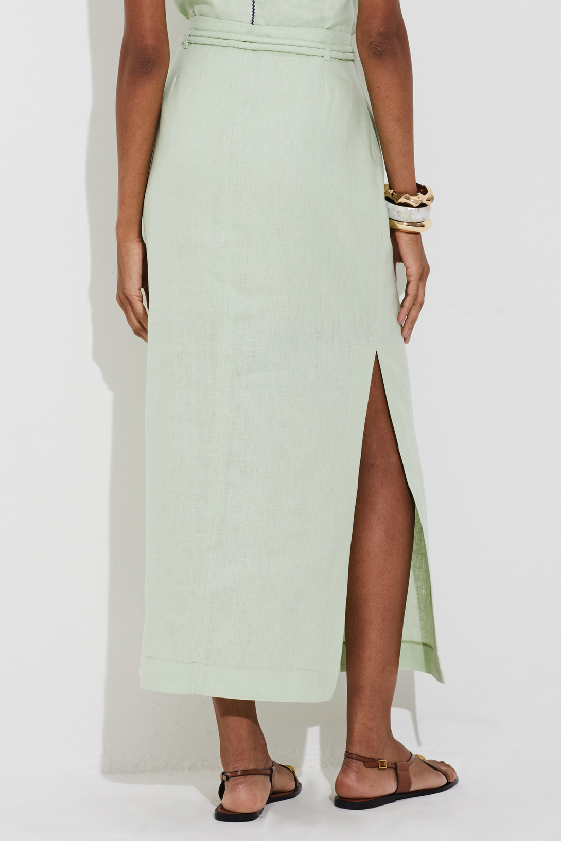OUTRAS CORES:: Saia Lápis Linho Puro Verde Claro
