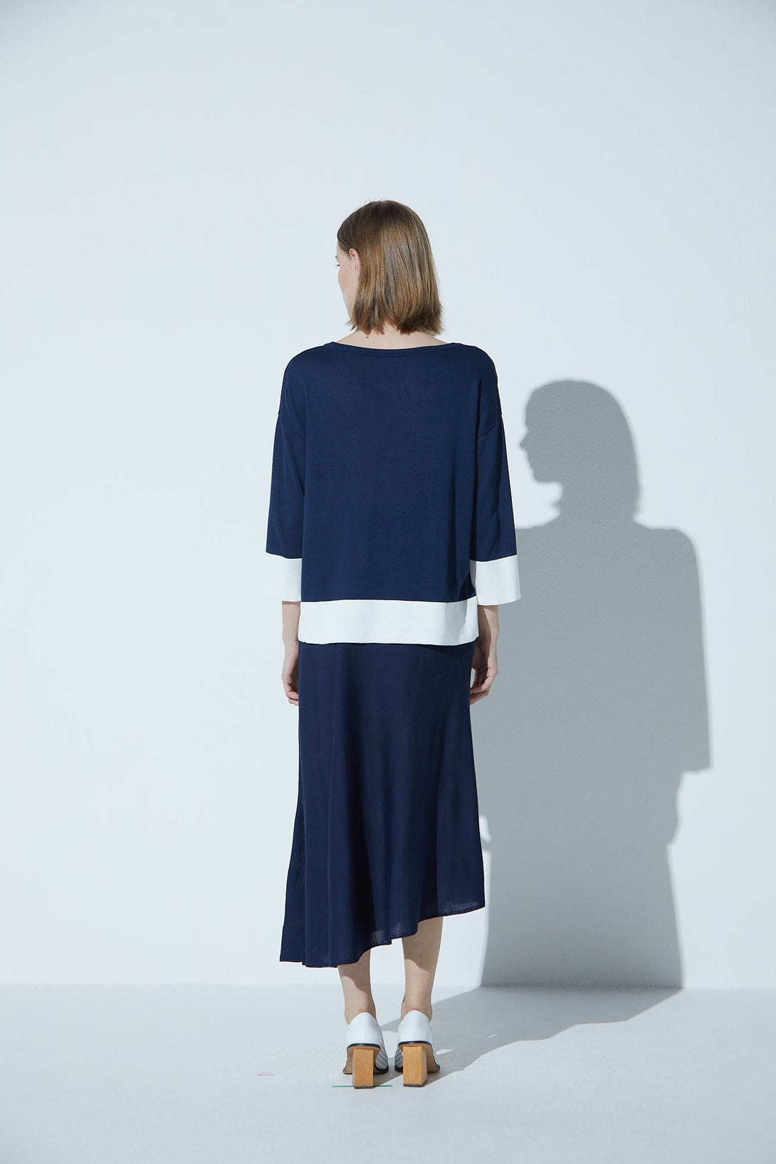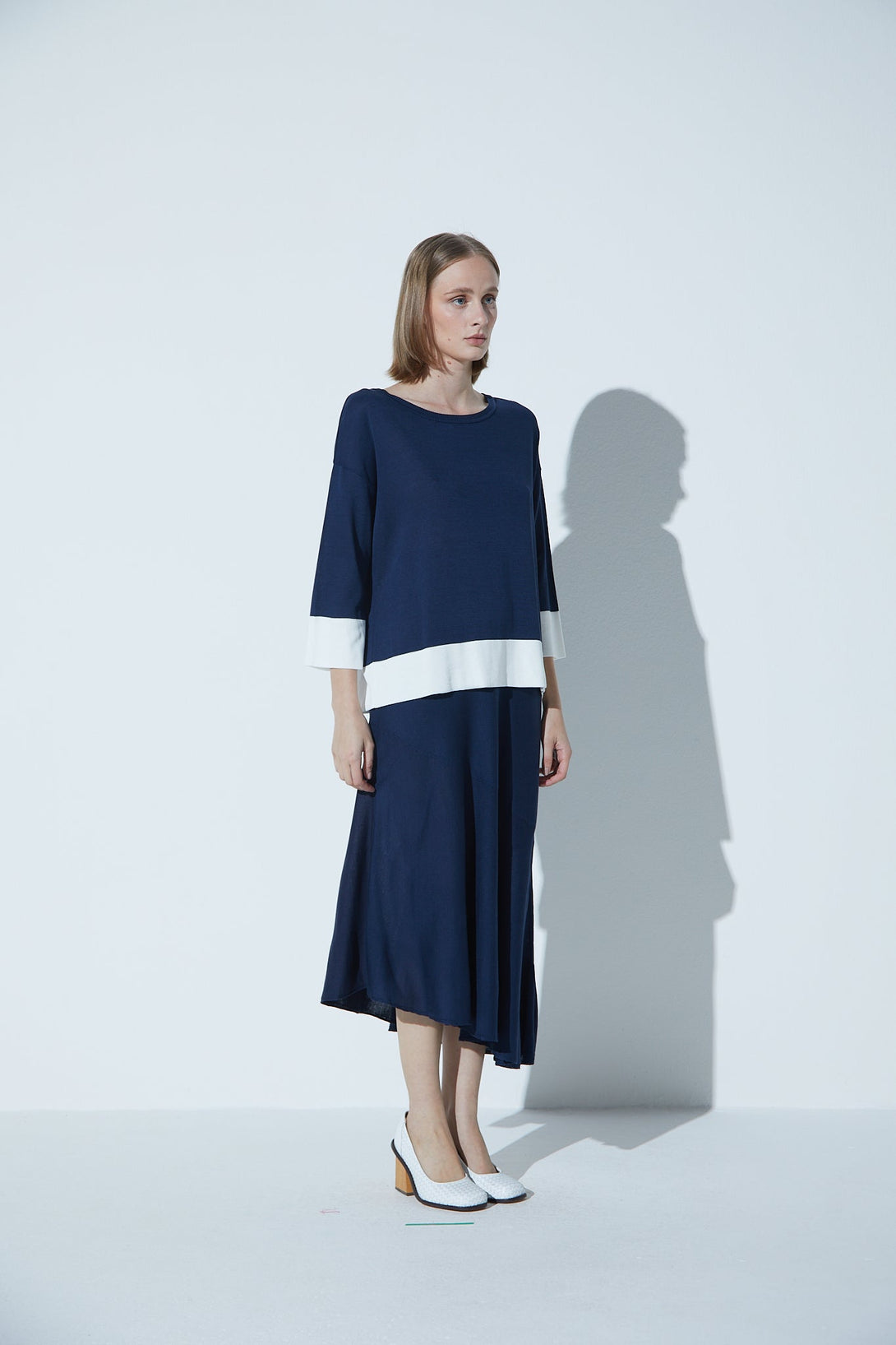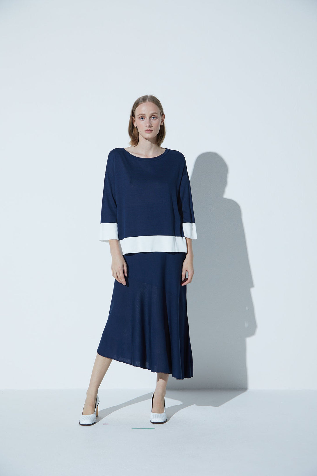 Saia Em Tricot Barra Assimétrica Marinho