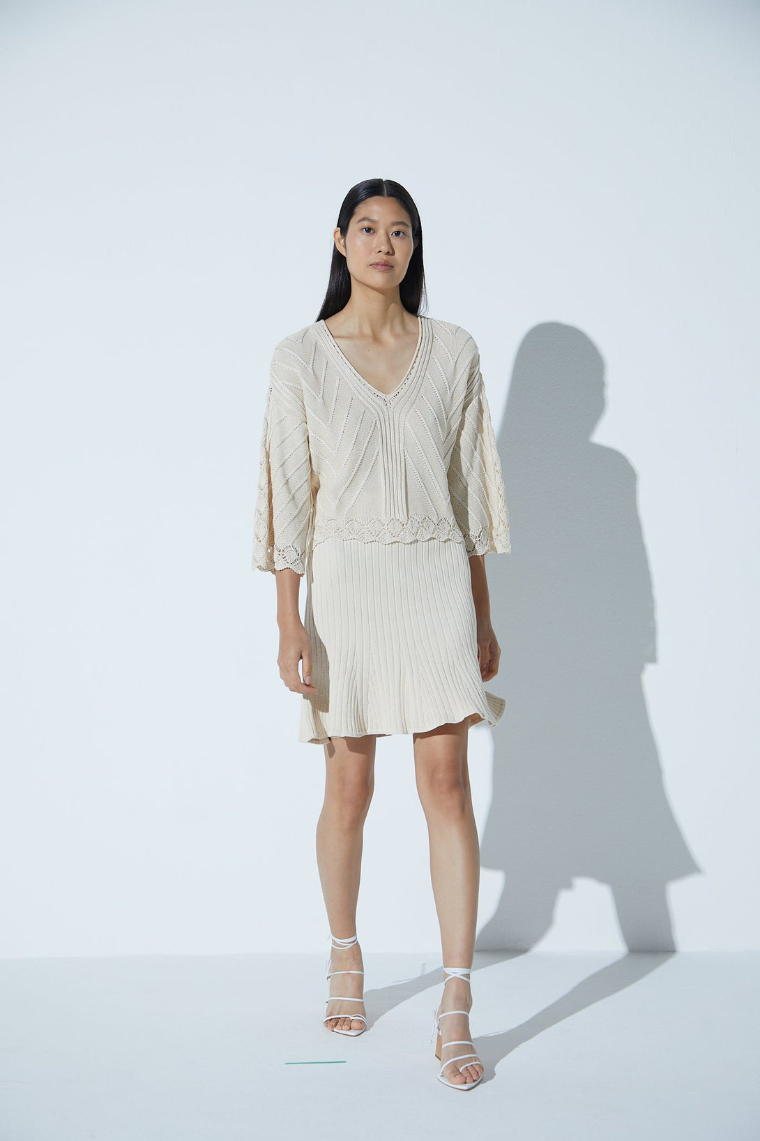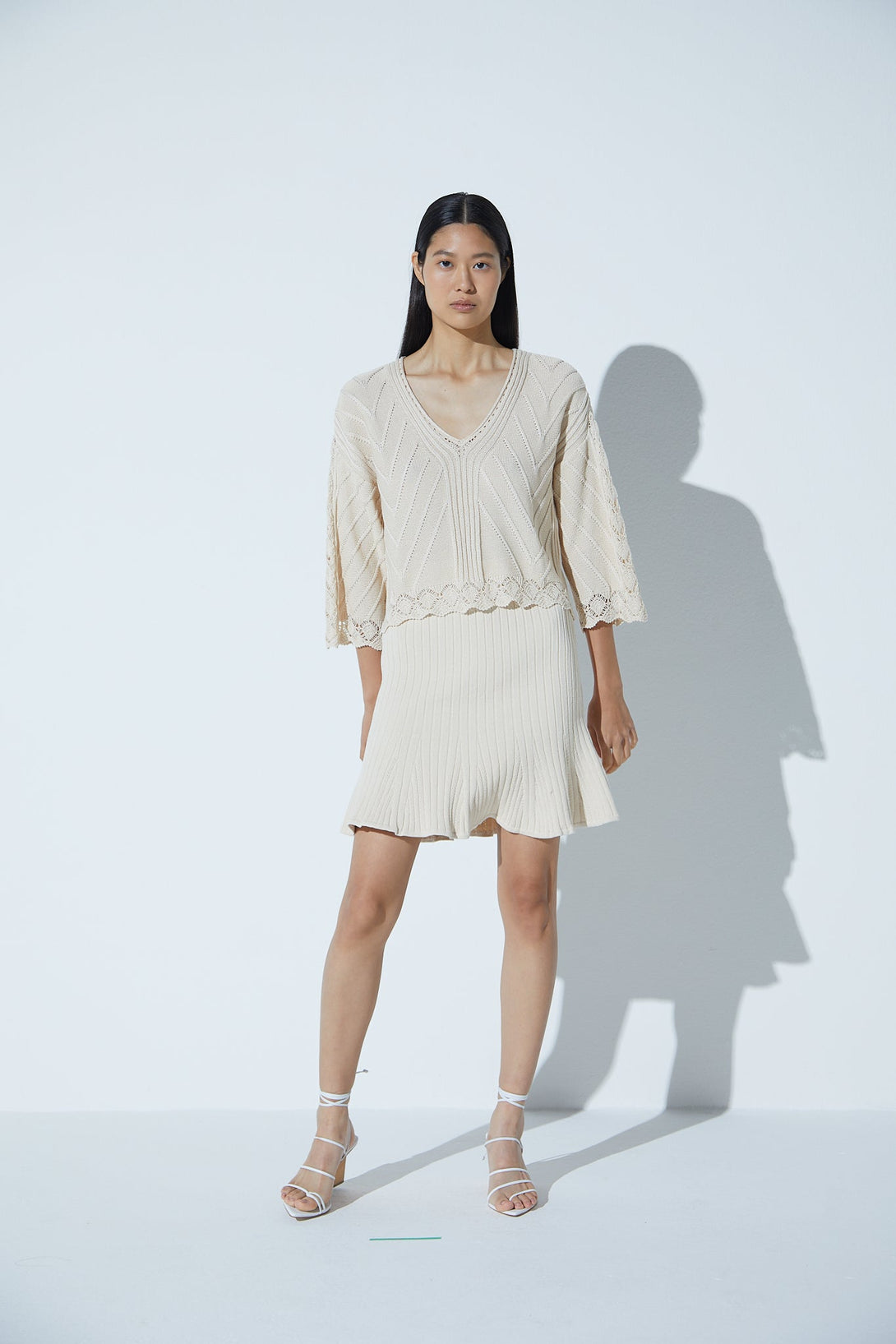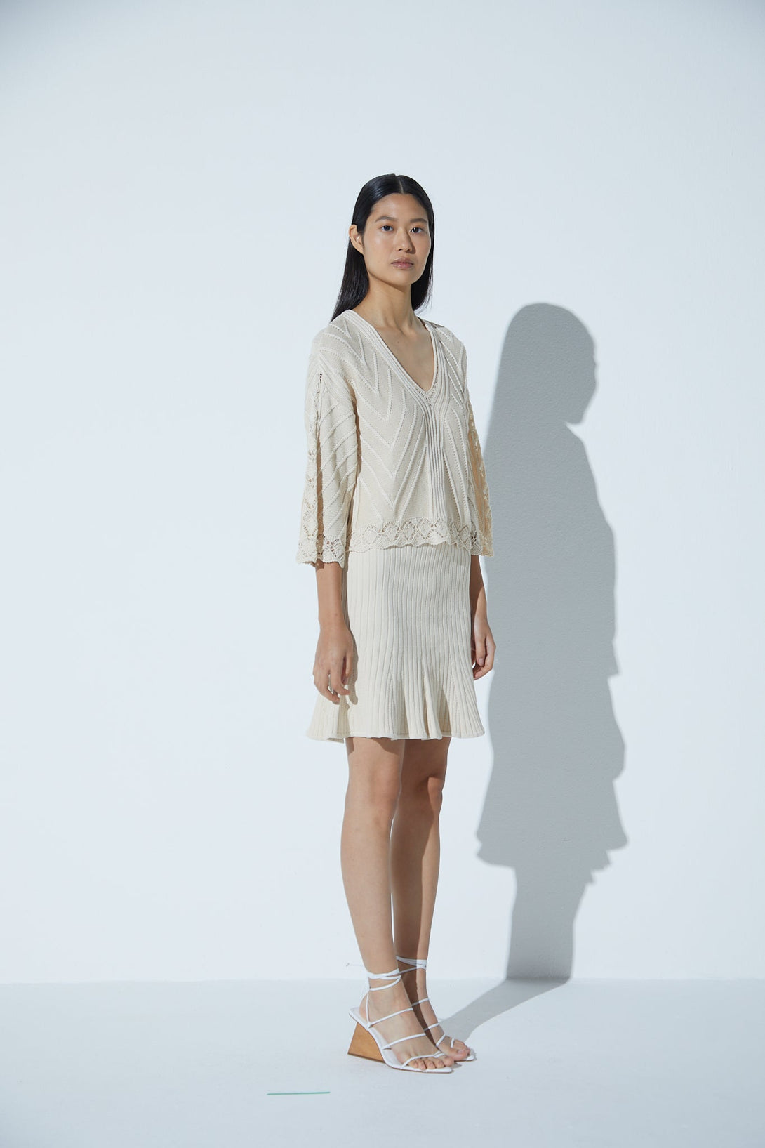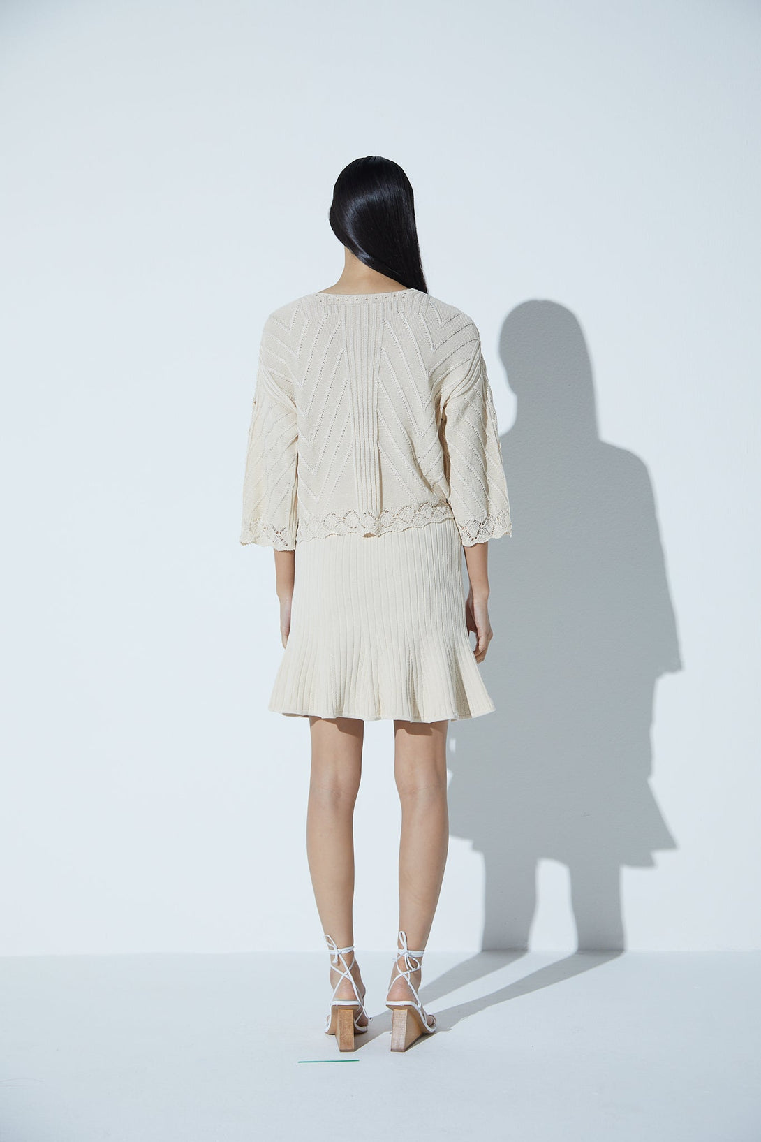 A Saia Em Tricot Com Barra Babados Ninive possui mix rico de pontos e técnicas que confere textura e relevo único às peças! Confeccionada em tricot de algodão com viscose a peça possui shape estruturado com um leve godê na barra. Aposte!