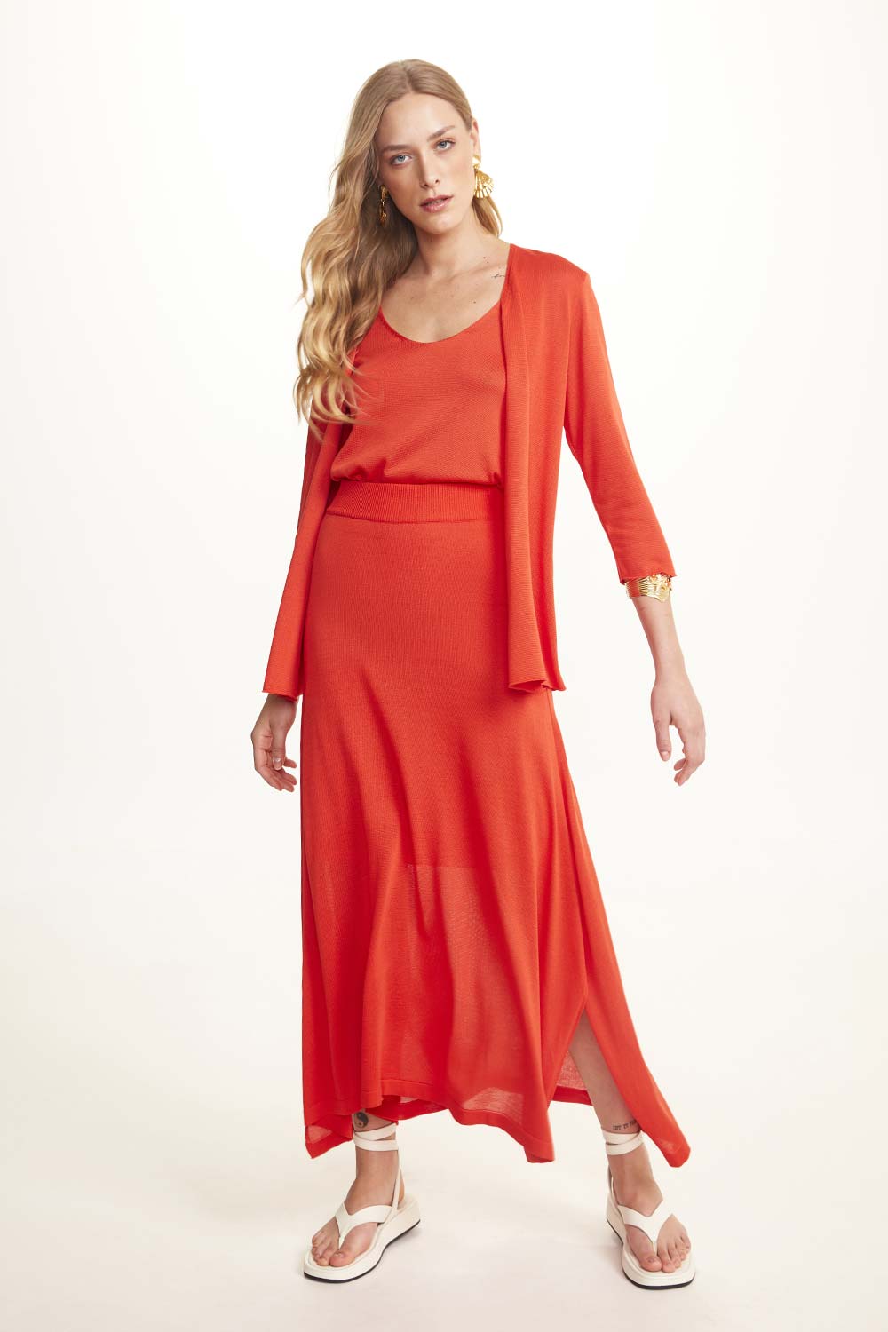 Saia Evase Com Fendas Laterais Em Tricot Tangerina