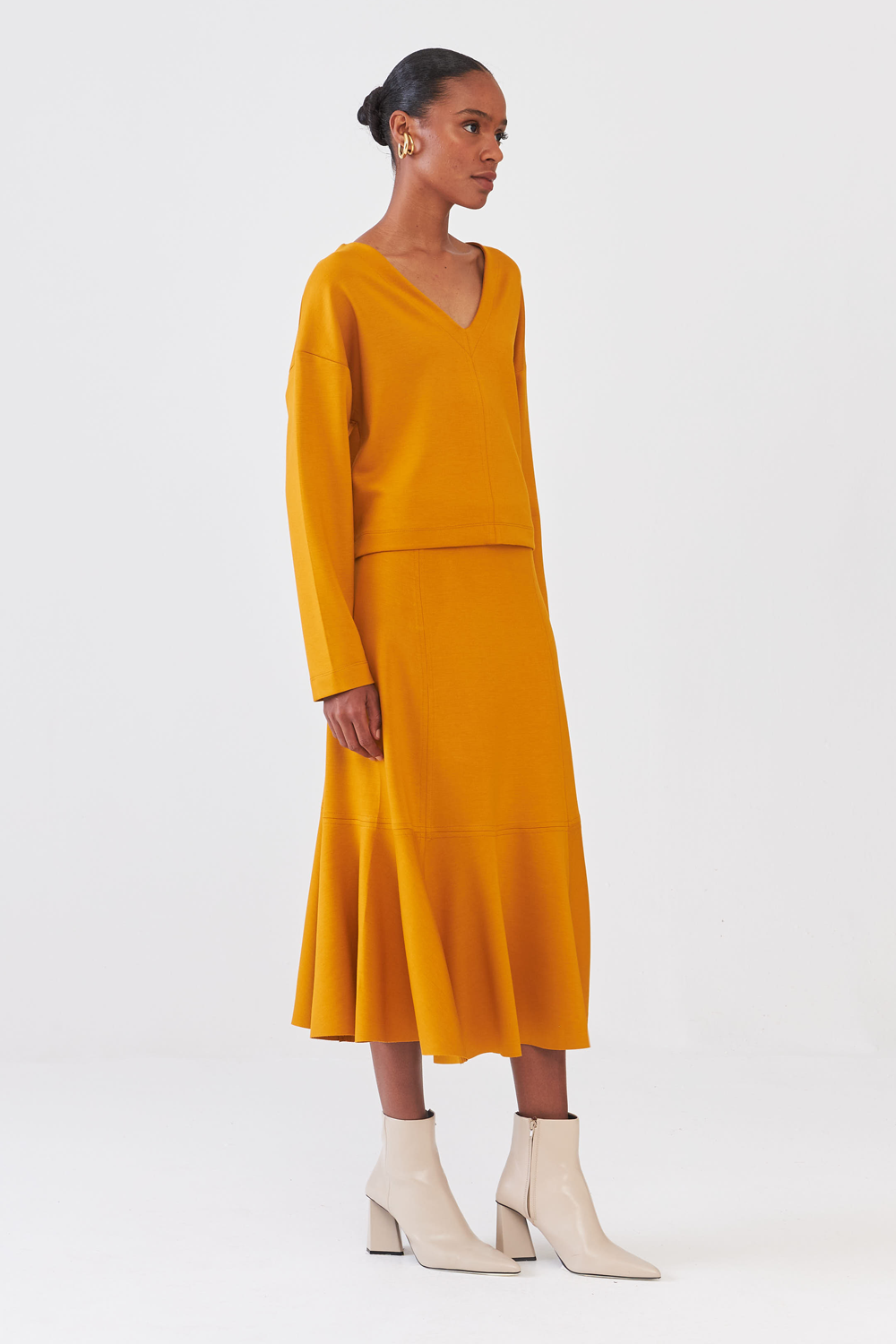 Saia Evase Em Malha Citrino
