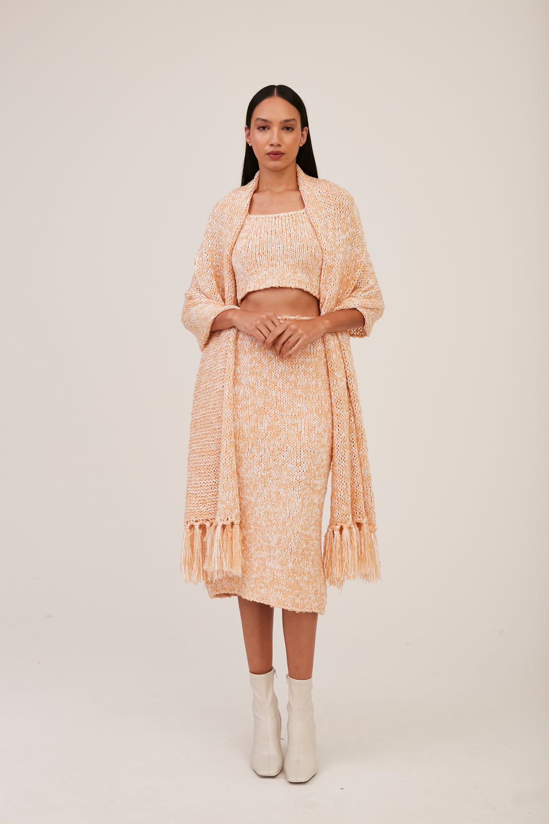 Saia Lápis em Tricot Artesanal Mescla Sand Off