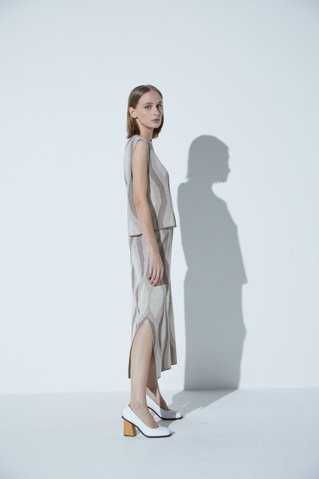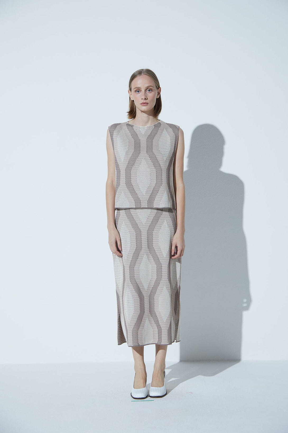 Saia Lápis Em Tricot Jacquard Mosaico Ninive