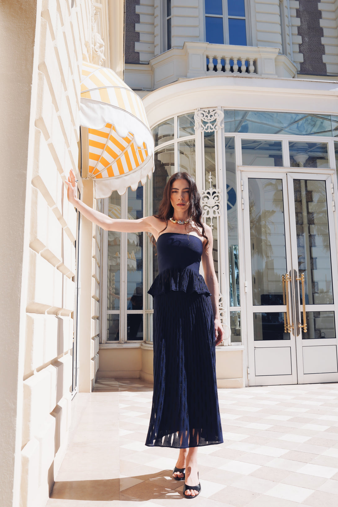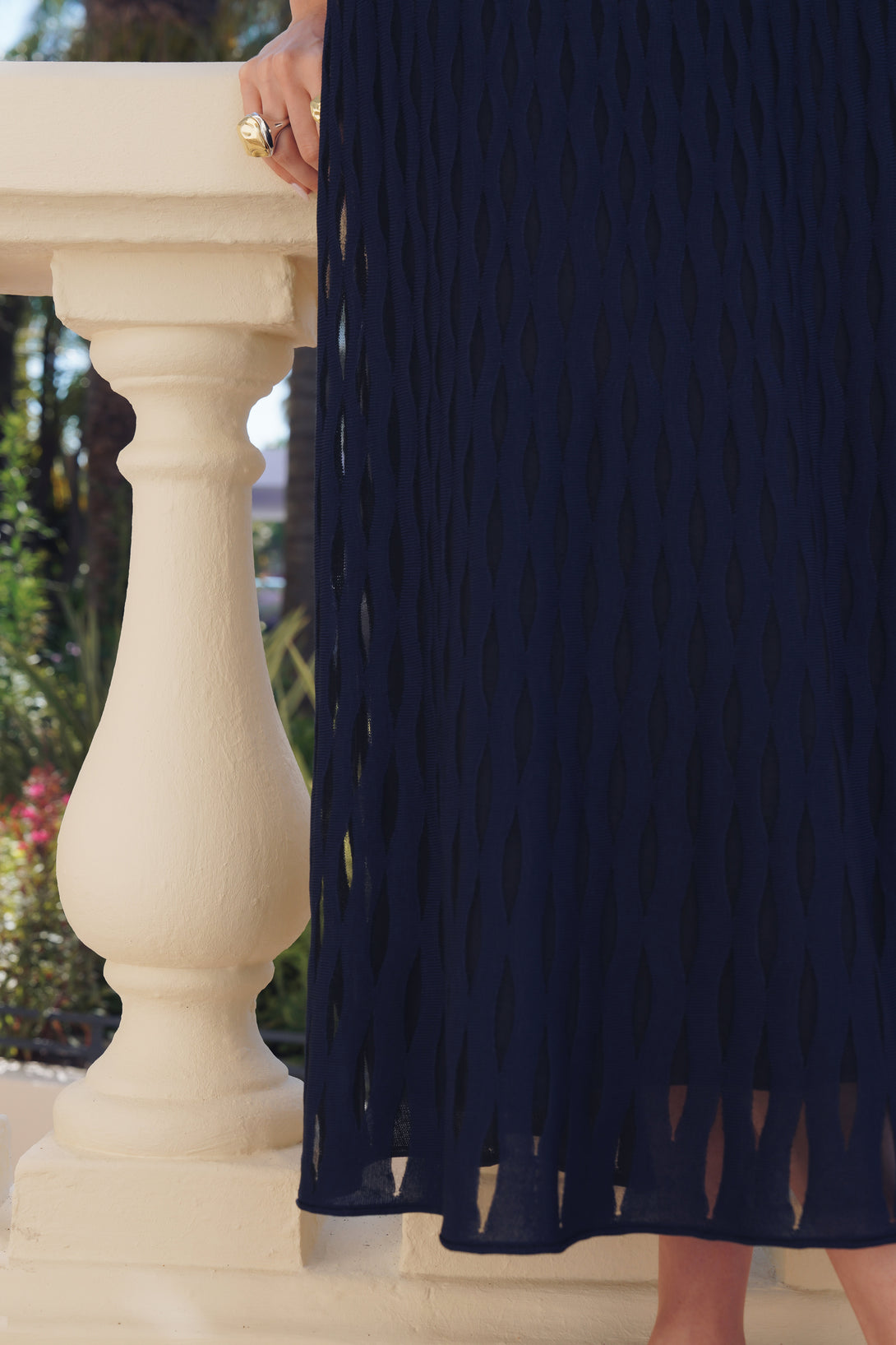 OUTRAS CORES:: Saia Longa Tricot Com Vazados Navy Classico
