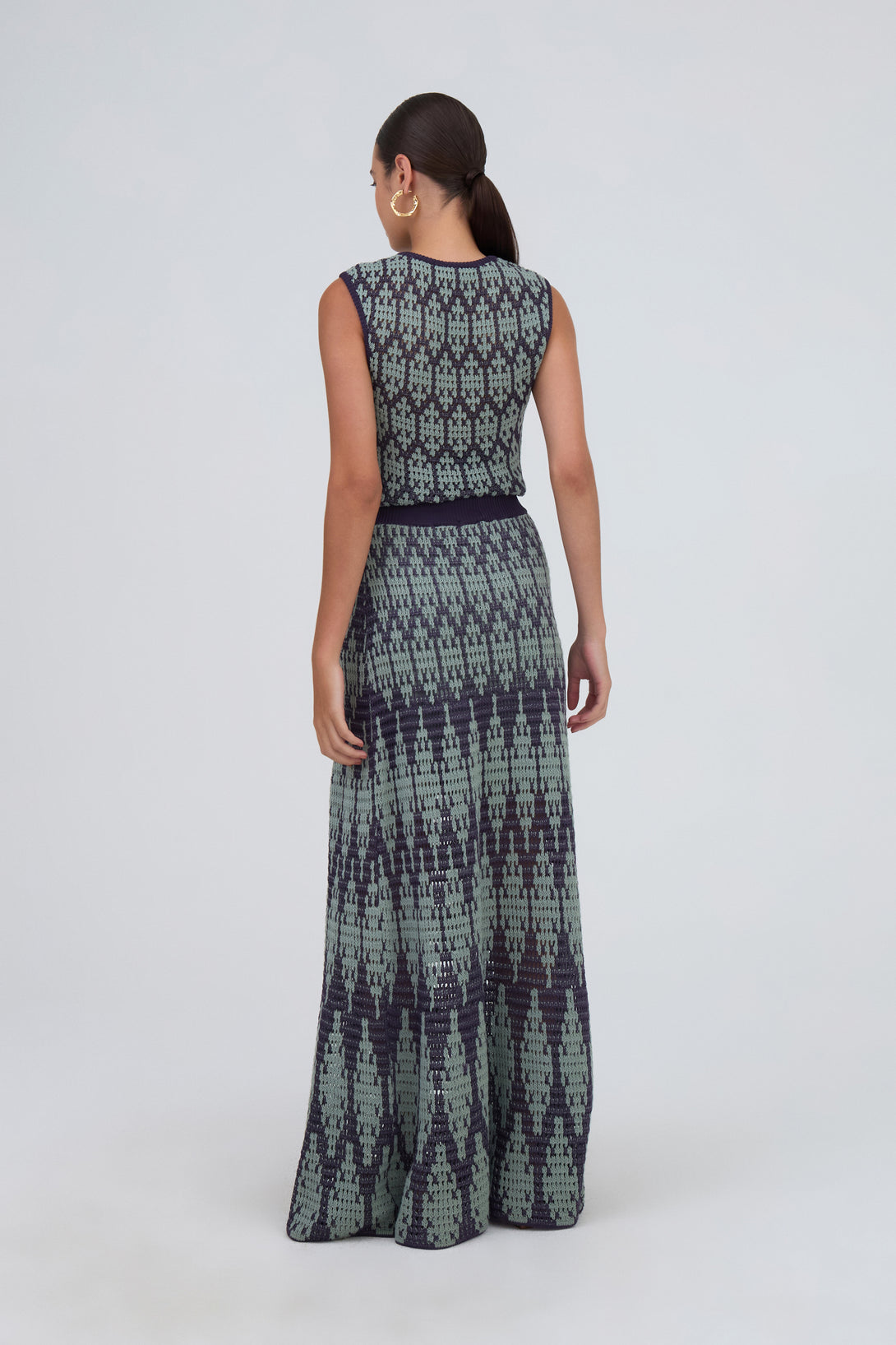 Saia Maxi Midi Evasê Bicolor Em Tricot Beringela