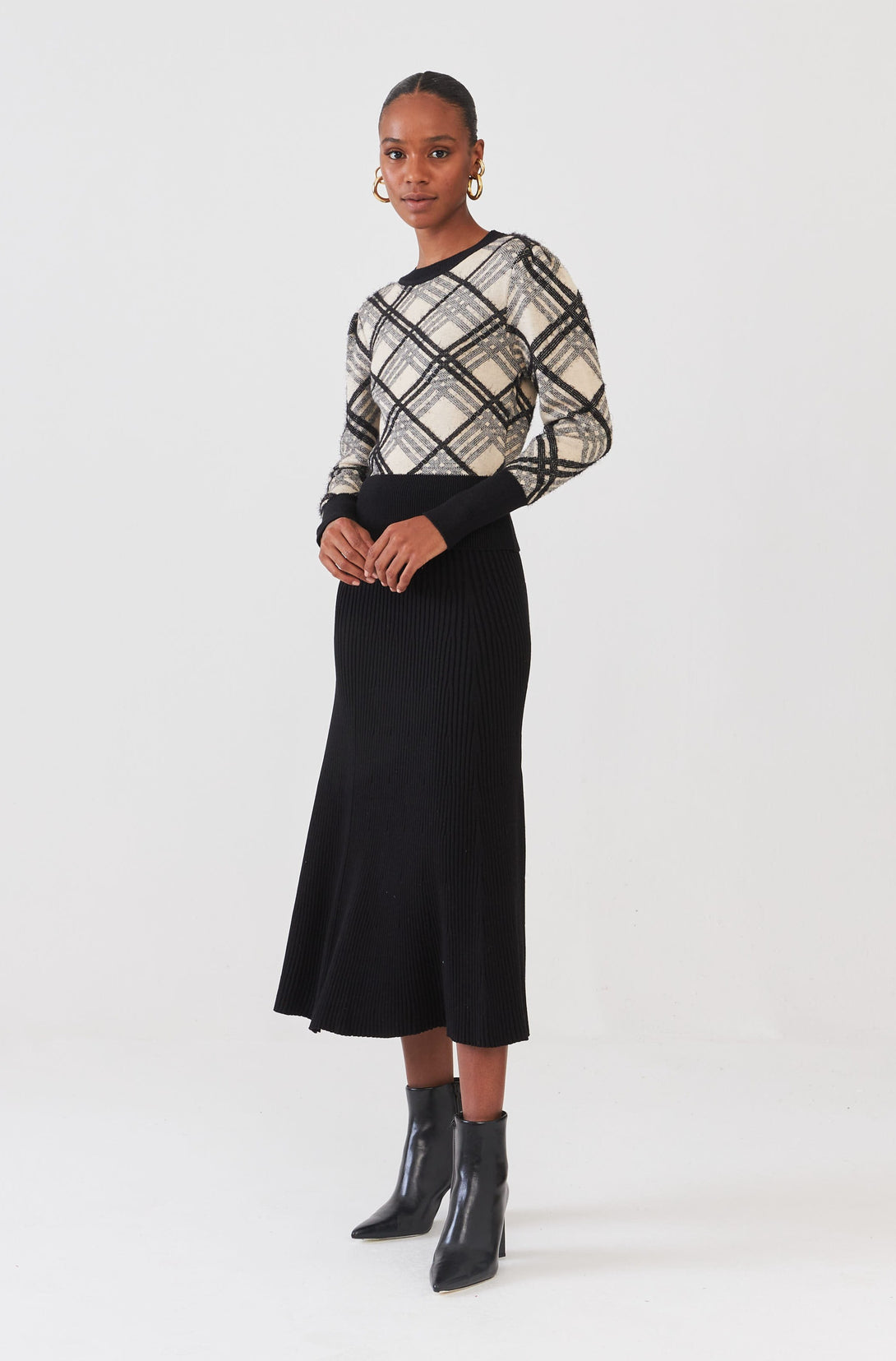 Esta saia midi canelada em hoya é perfeita para qualquer ocasião. Confeccionada em tricot macio e toque suave, proporciona conforto e elegância. Possui cintura alta e modelagem levemente rodada, valorizando a silhueta feminina. Ideal para compor qualquer look com estilo e sofisticação.
