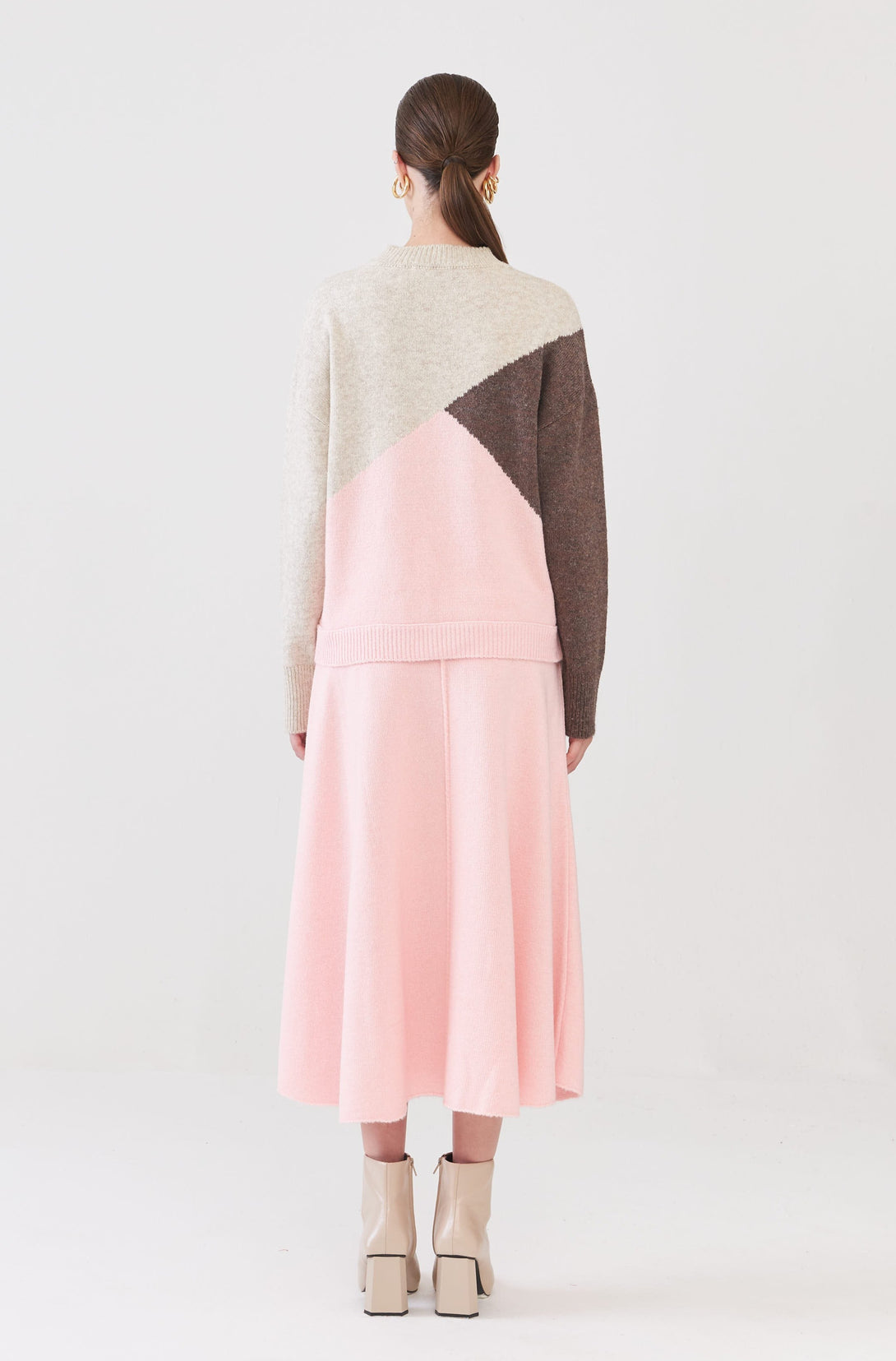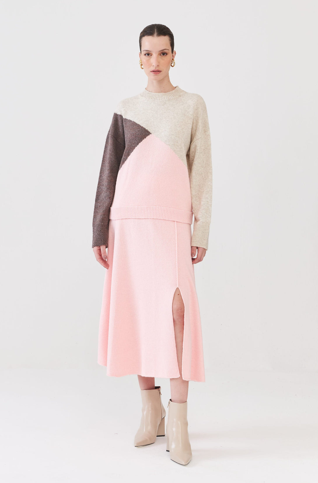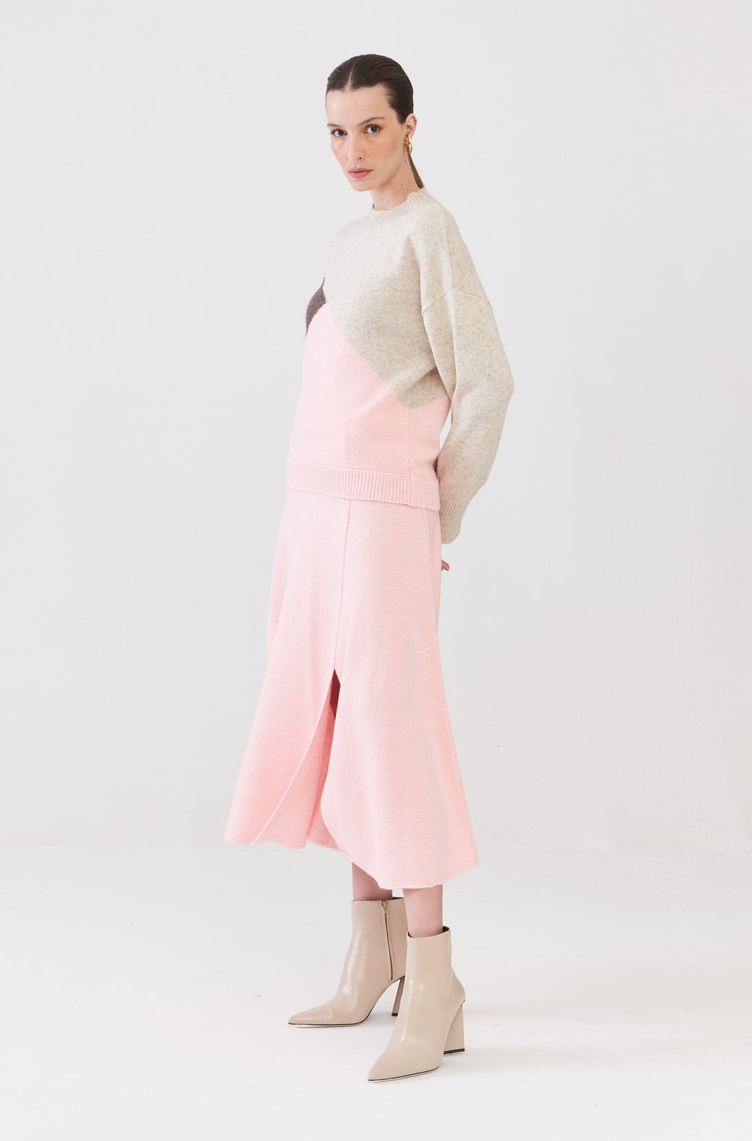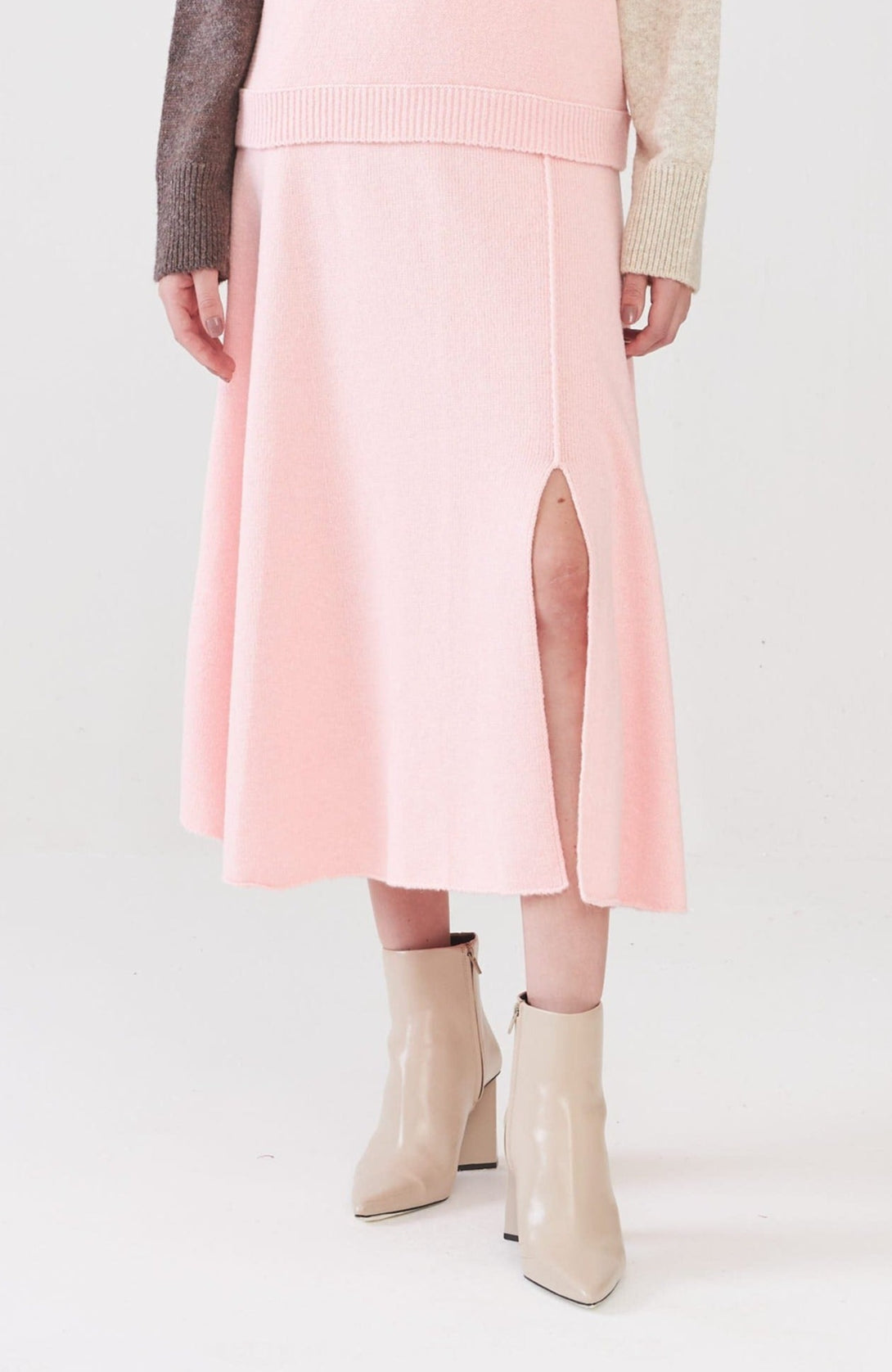 Saia Midi Com Fendas Em Tricot Rosa Retrô