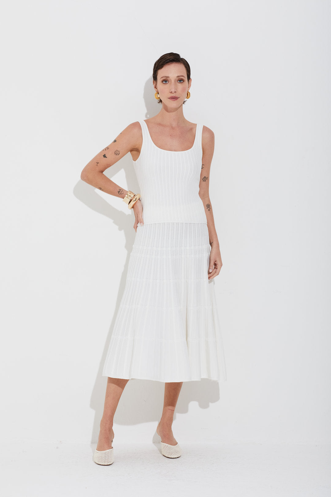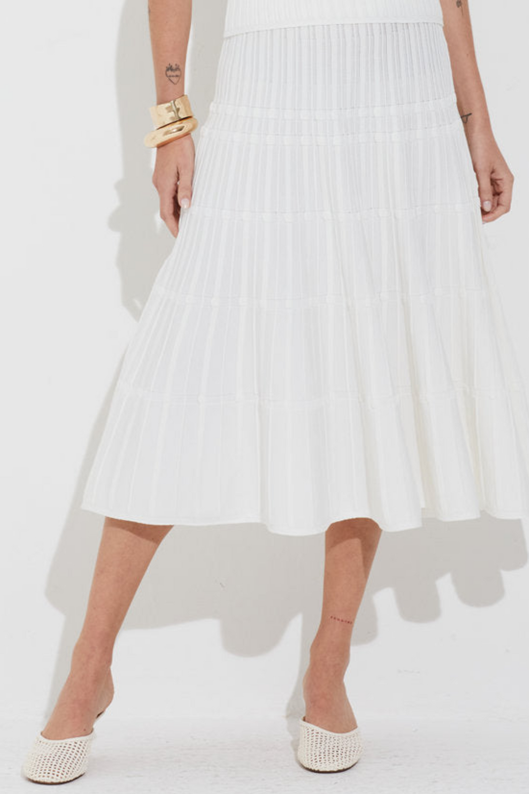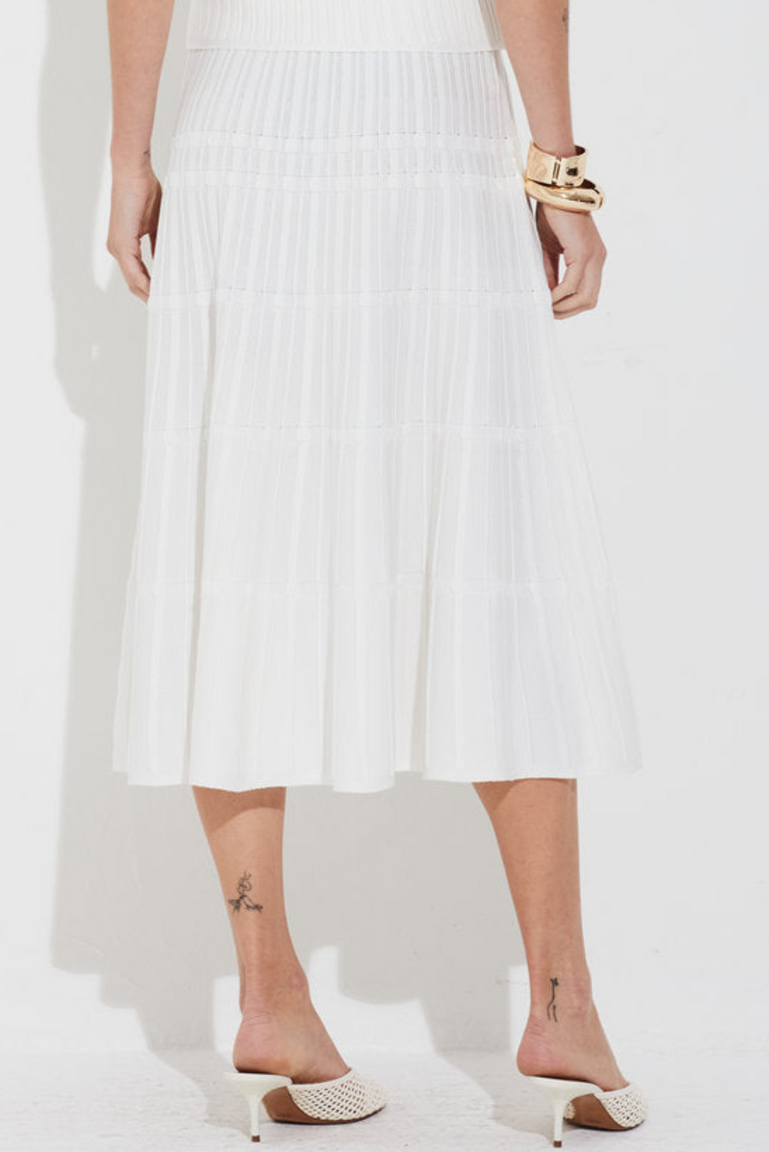OUTRAS CORES:: Saia Midi Em Tricot Canelado Bolinha Off White