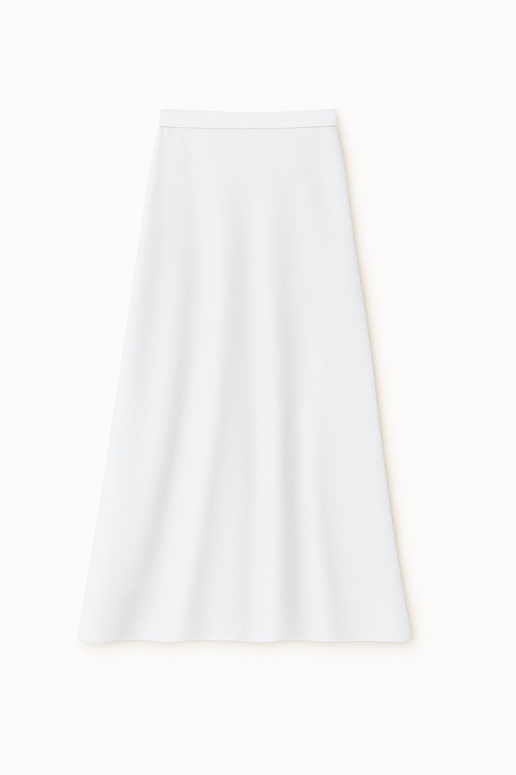 Saia midi em tricot de fio de viscose, com modelagem evasê e fendas laterais que criam movimento e leve volume ao caminhar. O cós em elástico com acabamento canelado garante conforto ao vestir e um ajuste sutil na cintura. Uma peça da nossa Linha Essencial, versátil e feminina, perfeita para composições leves e elegantes no dia a dia.