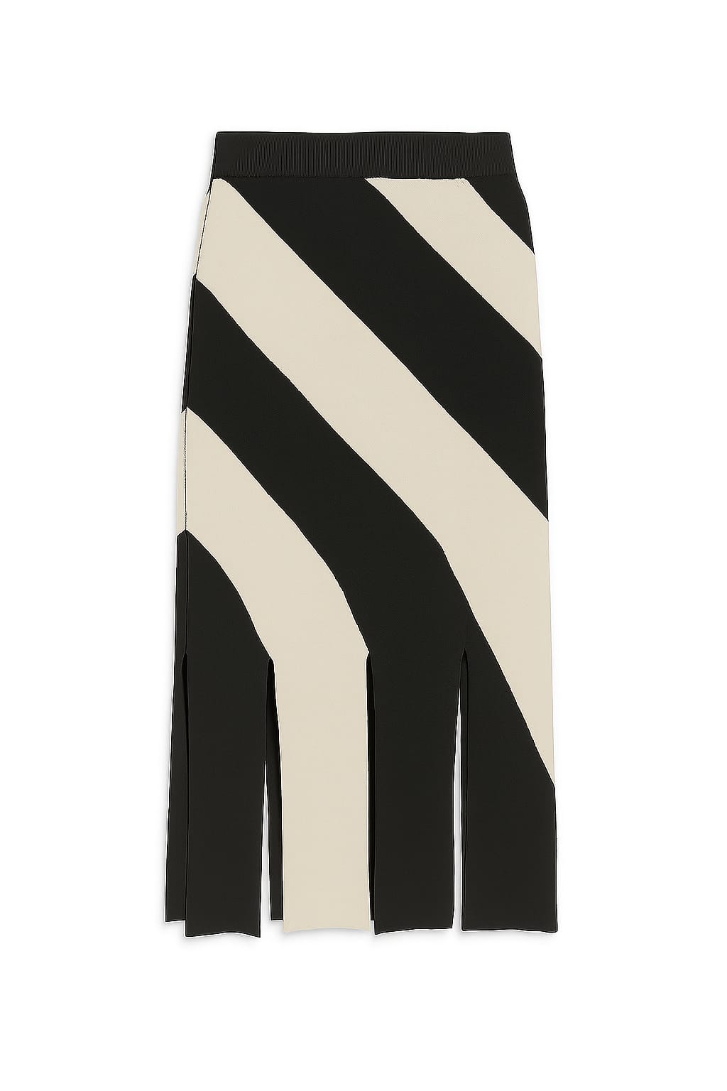 Saia Midi Em Tricot Jacquard Listras Diagonal Preto Bege