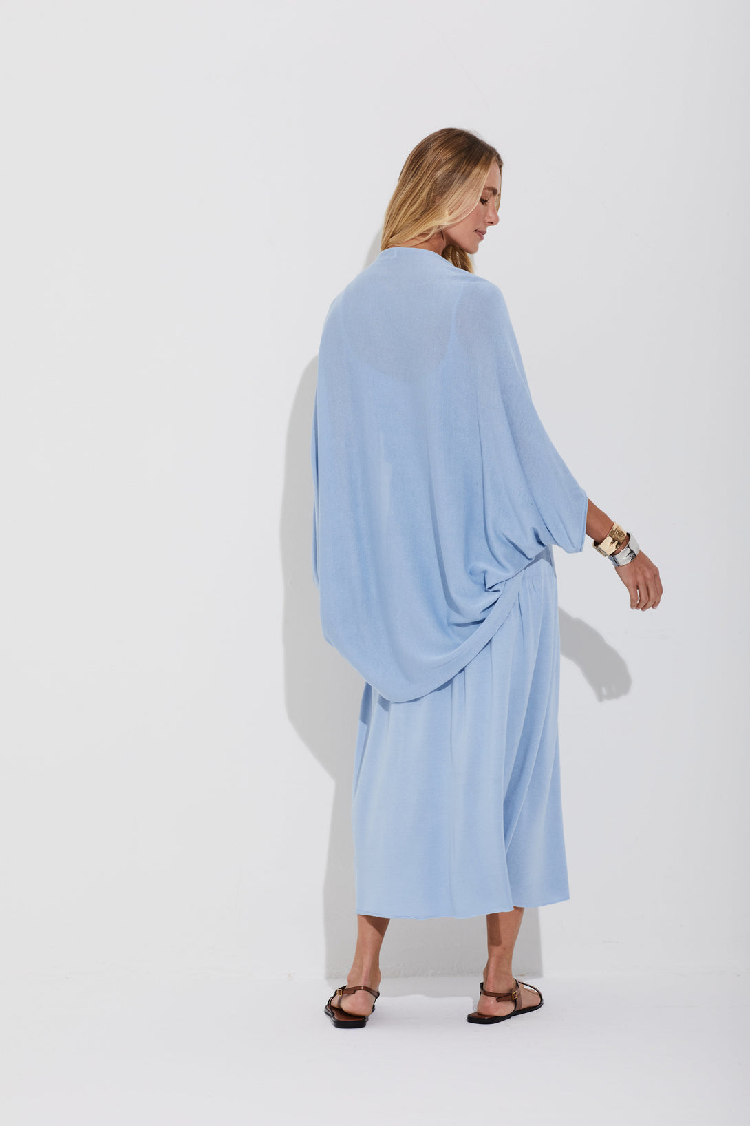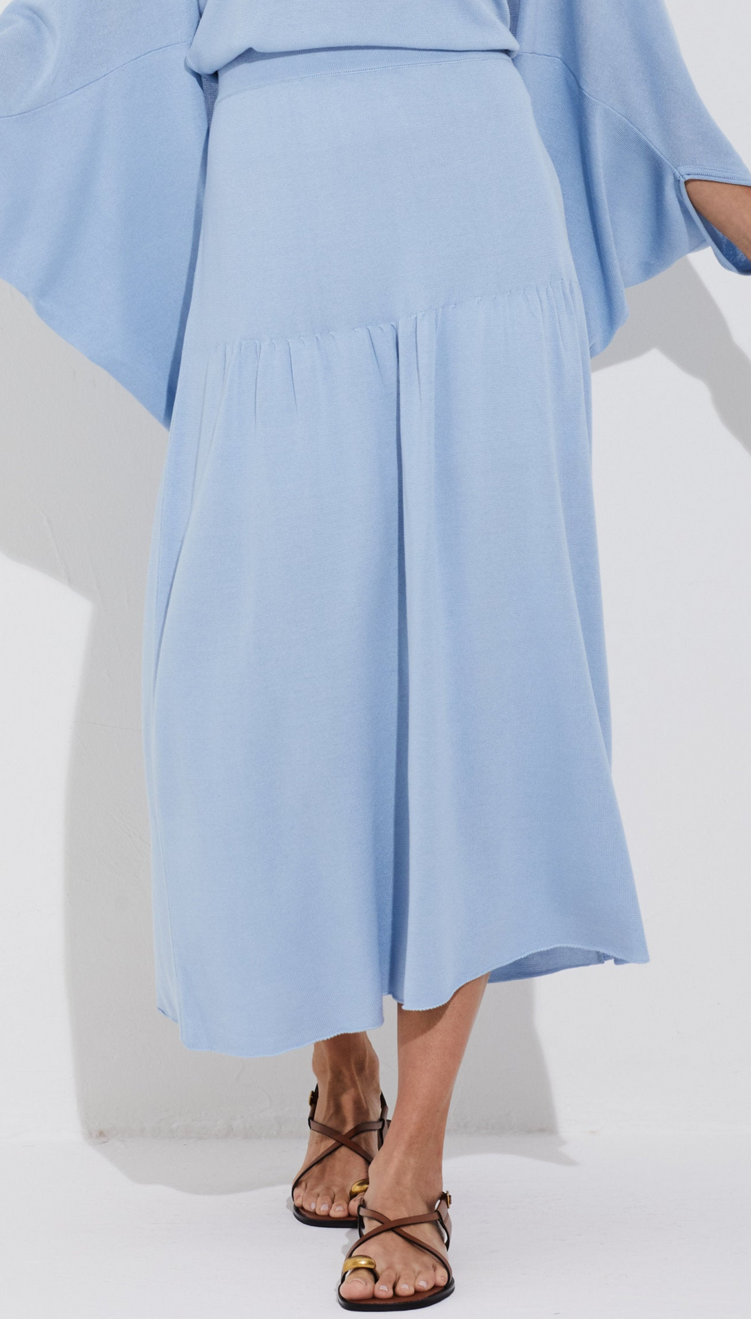A saia midi da nossa Linha Essencial é confeccionada em tricot de fio de viscose, com toque macio e textura leve. A modelagem é ajustada no quadril e ganha movimento com o caimento evasê, enquanto o cós em elástico garante conforto ao vestir. Um clássico atemporal, ideal para compor produções versáteis com elegância e leveza.