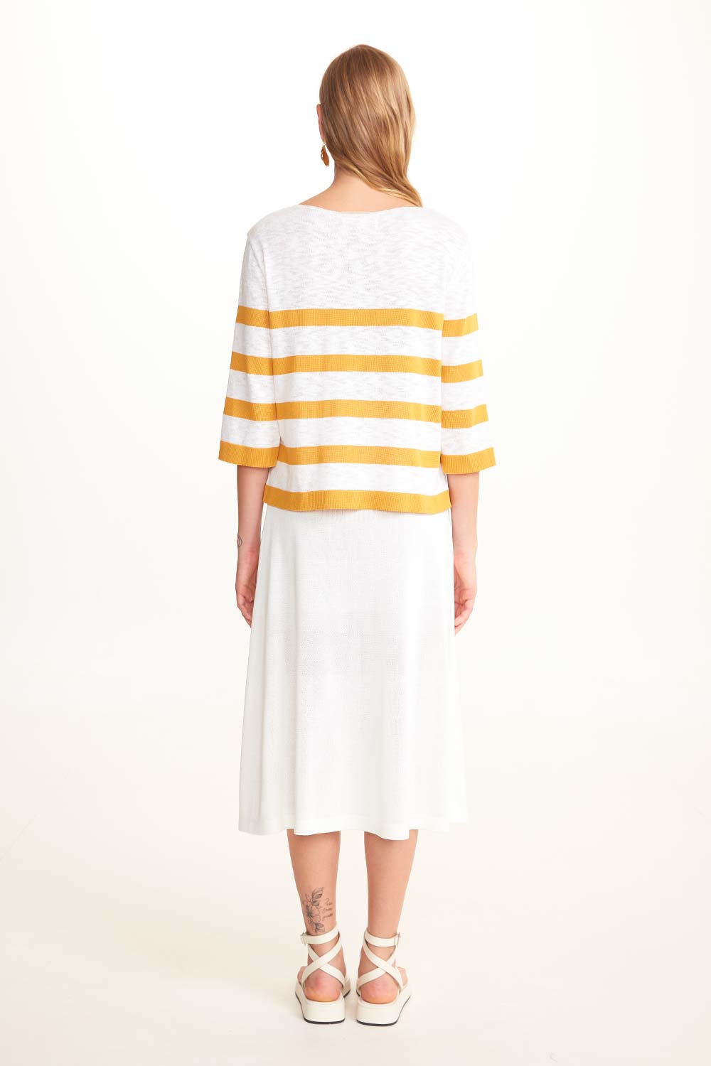Com modelagem midi clássica e toque macio, a peça oferece elasticidade na medida certa, garantindo conforto durante todo o dia — perfeita para composições casuais sofisticadas, produções de verão, viagens e encontros especiais. Seu design minimalista permite combinações infinitas com blusas, tricots listrados, regatas ou camisas, trazendo sempre um visual moderno e refinado, fiel ao DNA premium da marca.