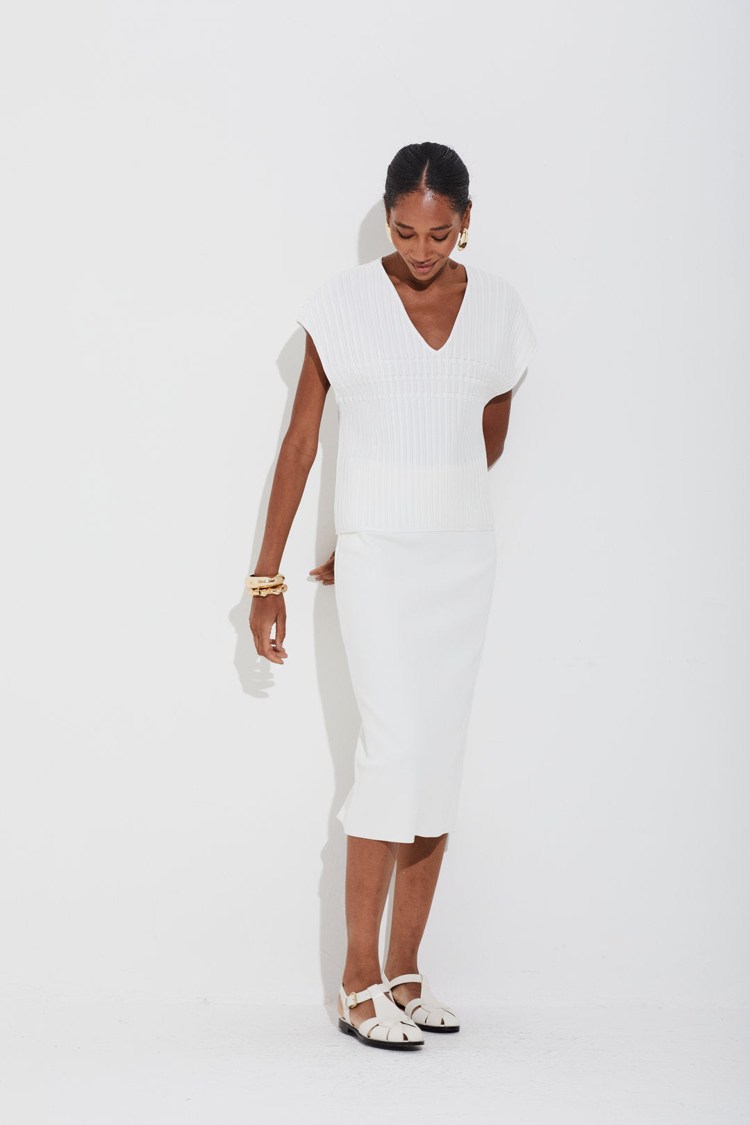 OUTRAS CORES:: Saia Midi Tricot Em Malha Cheia Off White