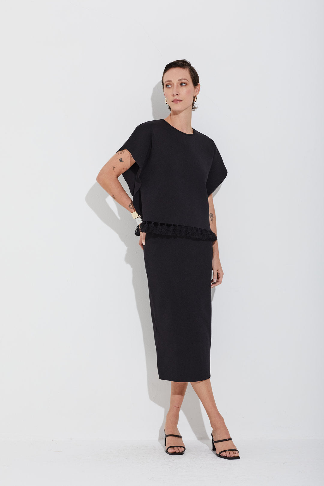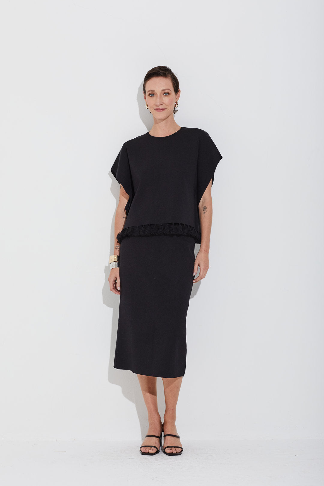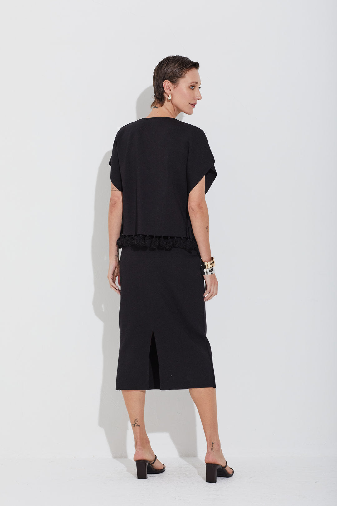 OUTRAS CORES:: Saia Midi Tricot Em Malha Cheia Preto