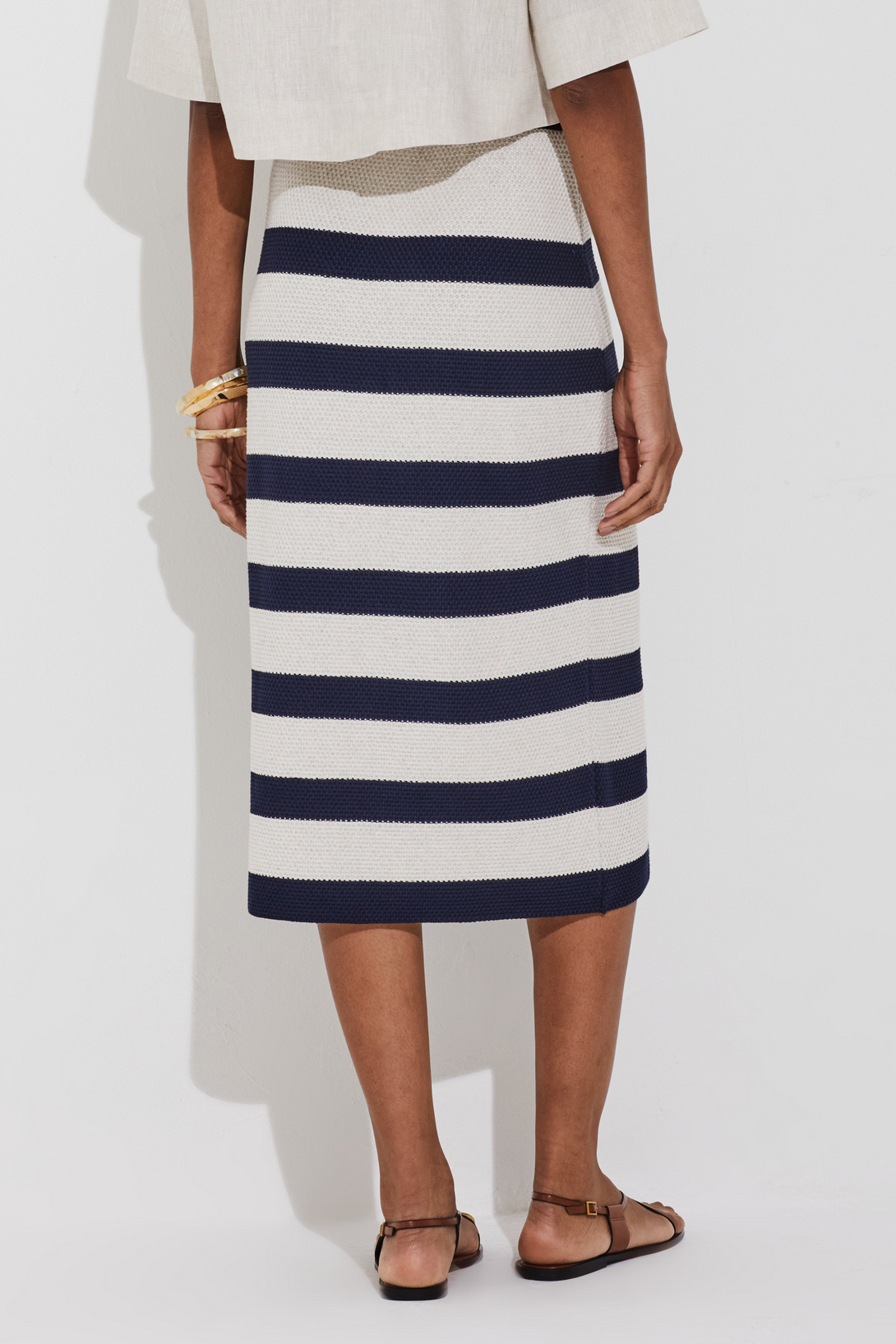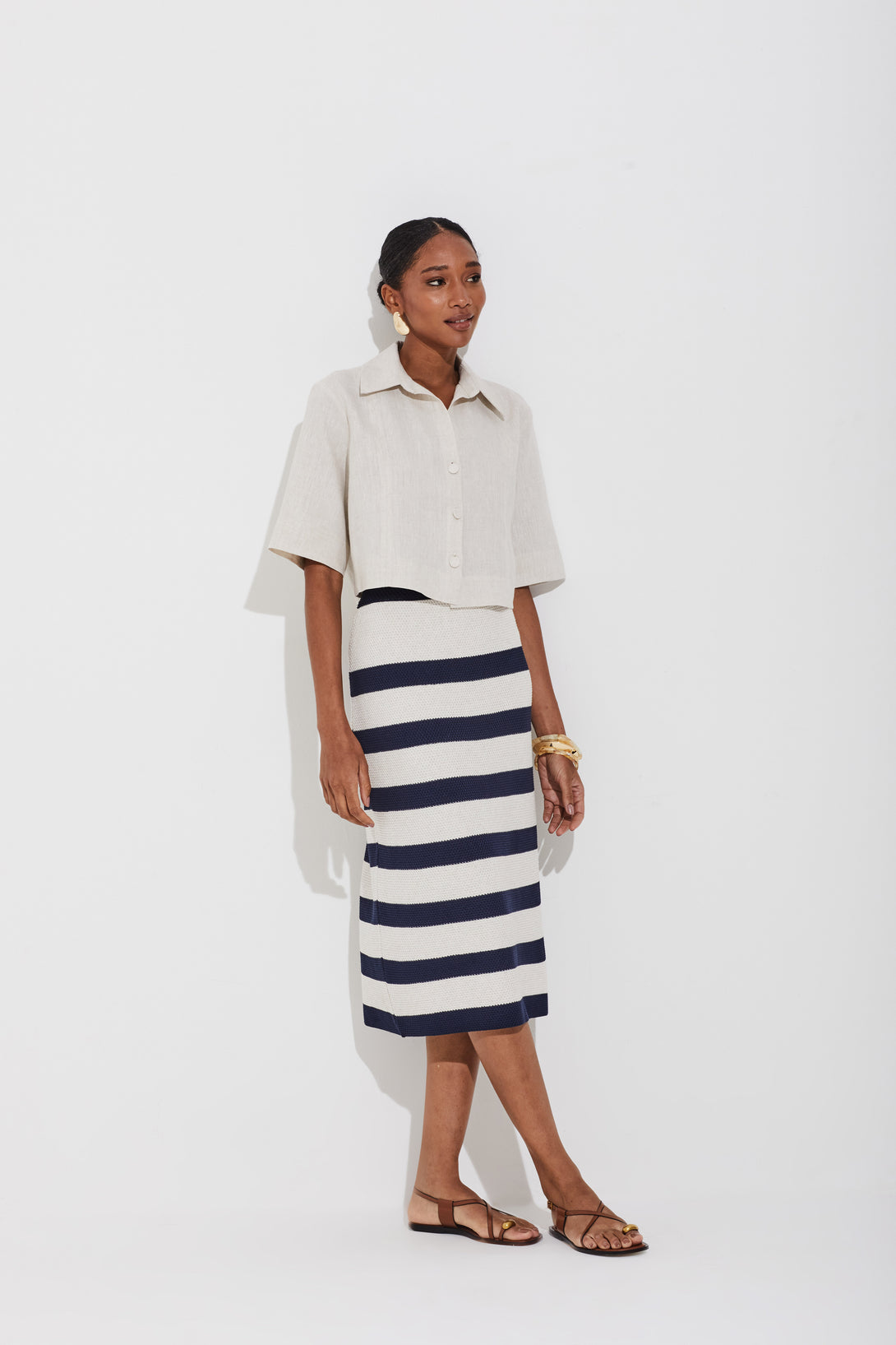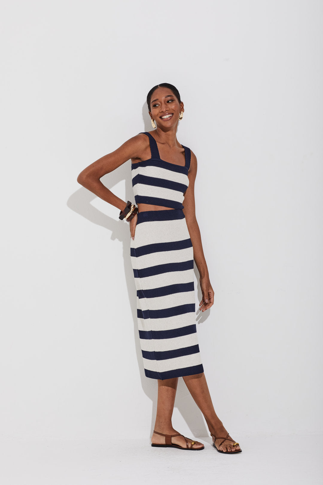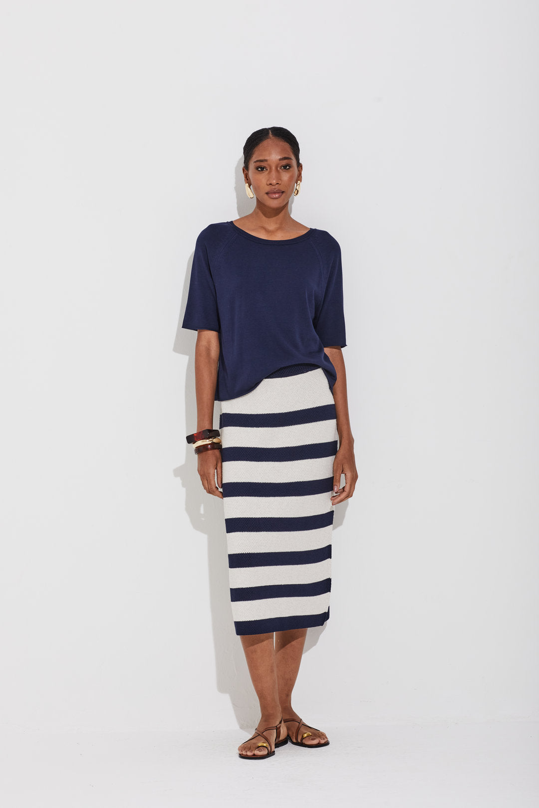 Saia Tricot Listrado Rústico Linho/navy Classico