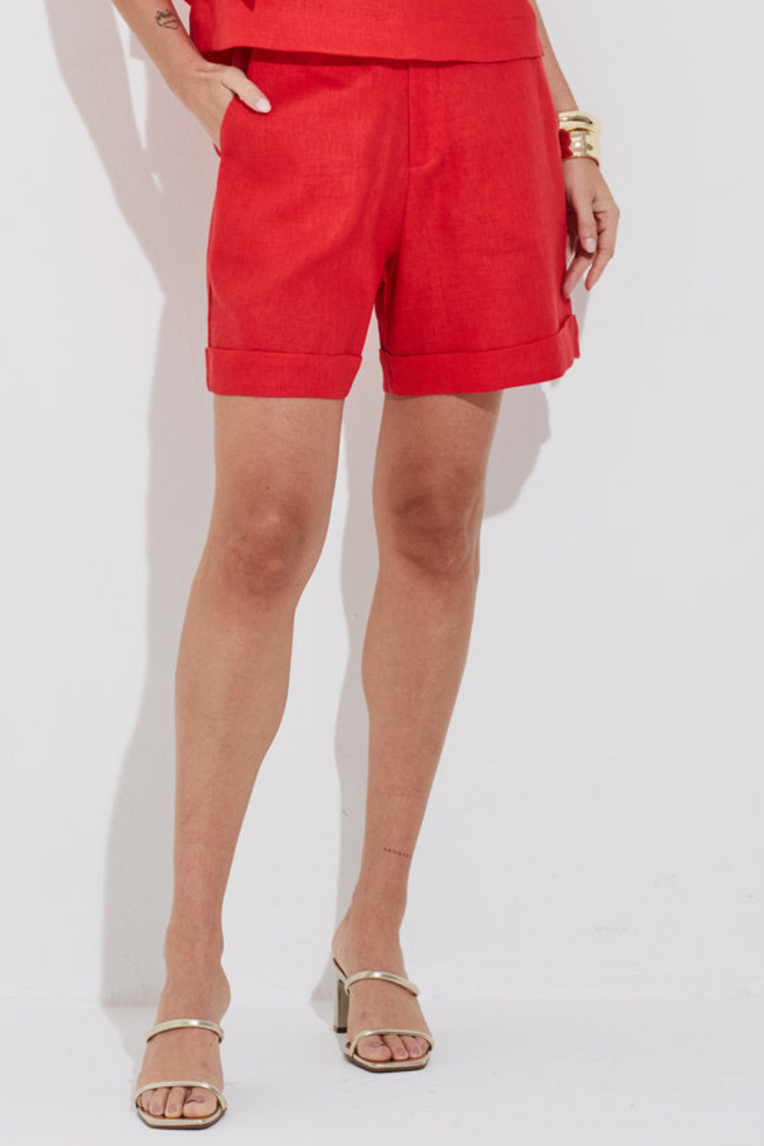 OUTRAS CORES:: Shorts Linho Puro Tomate