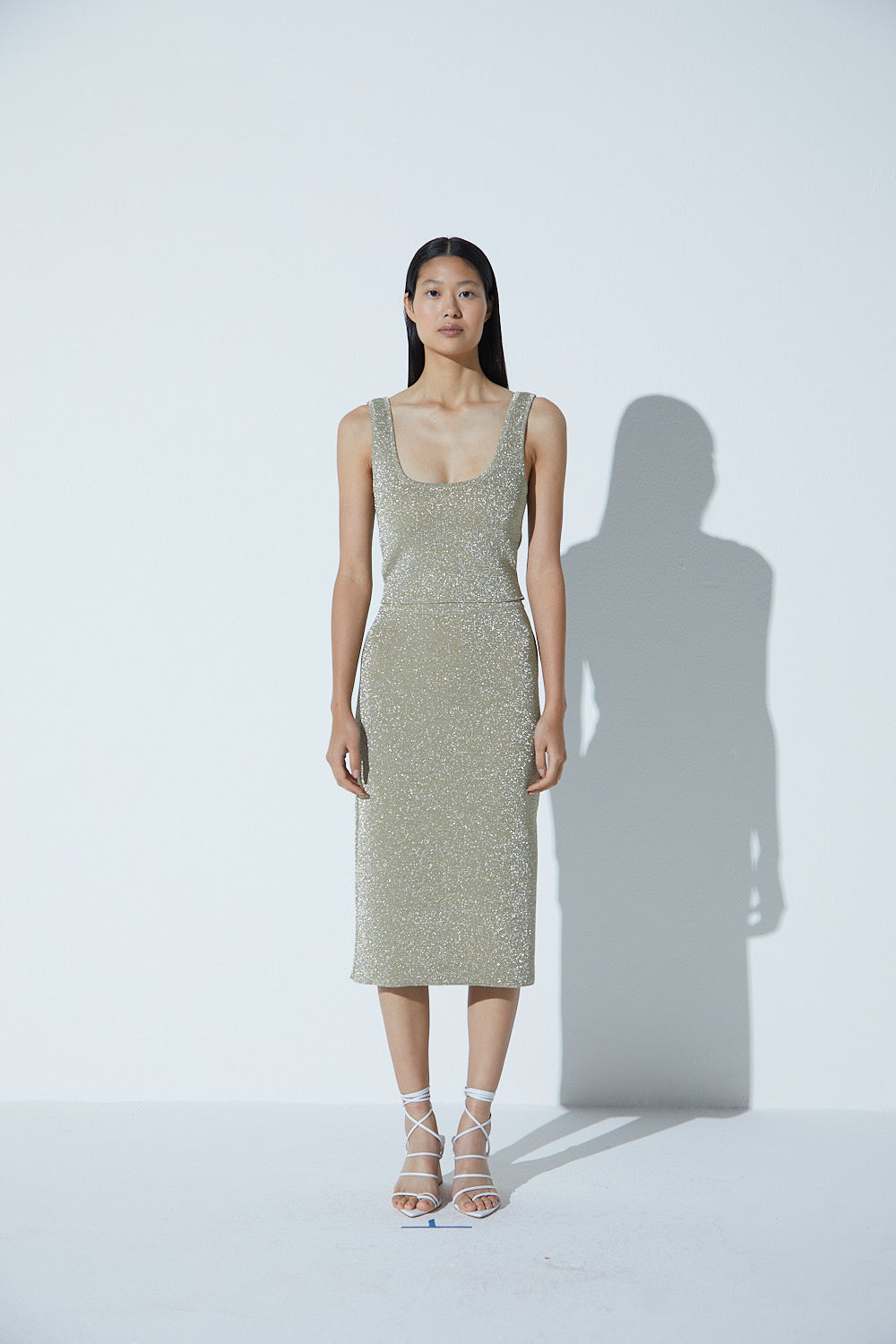 Experimente o estilo clássico e moderno com o Top Com Alças Em Tricot Lurex Silver Gold. Decote quadrado que valoriza o seu colo e alças largas para maior comodidade. Tecido tricot estruturado em camada dupla para um toque agradável e conforto.