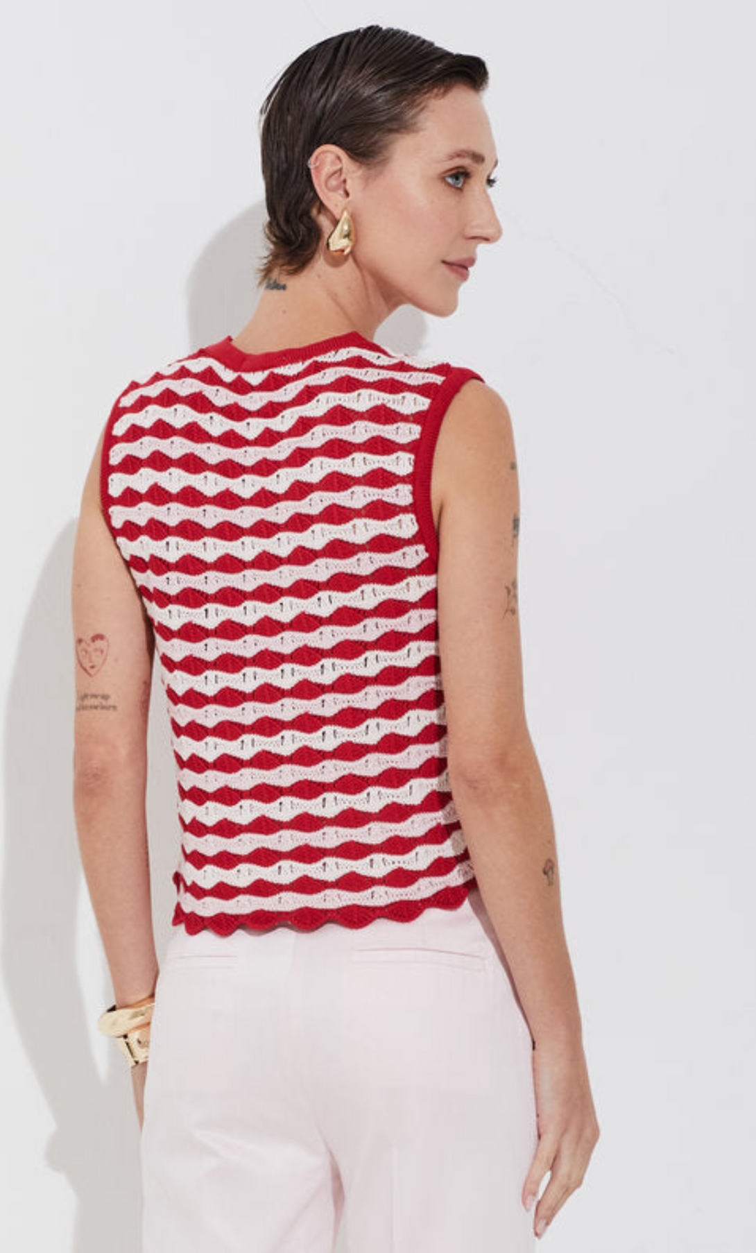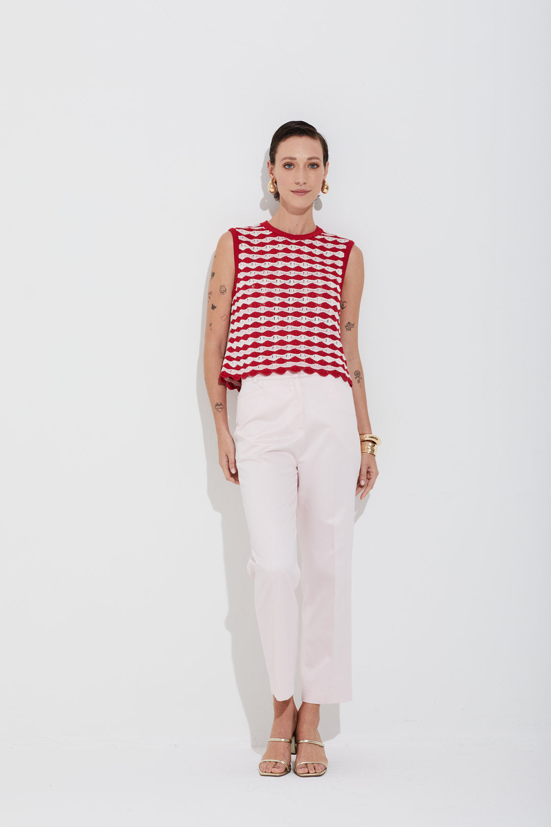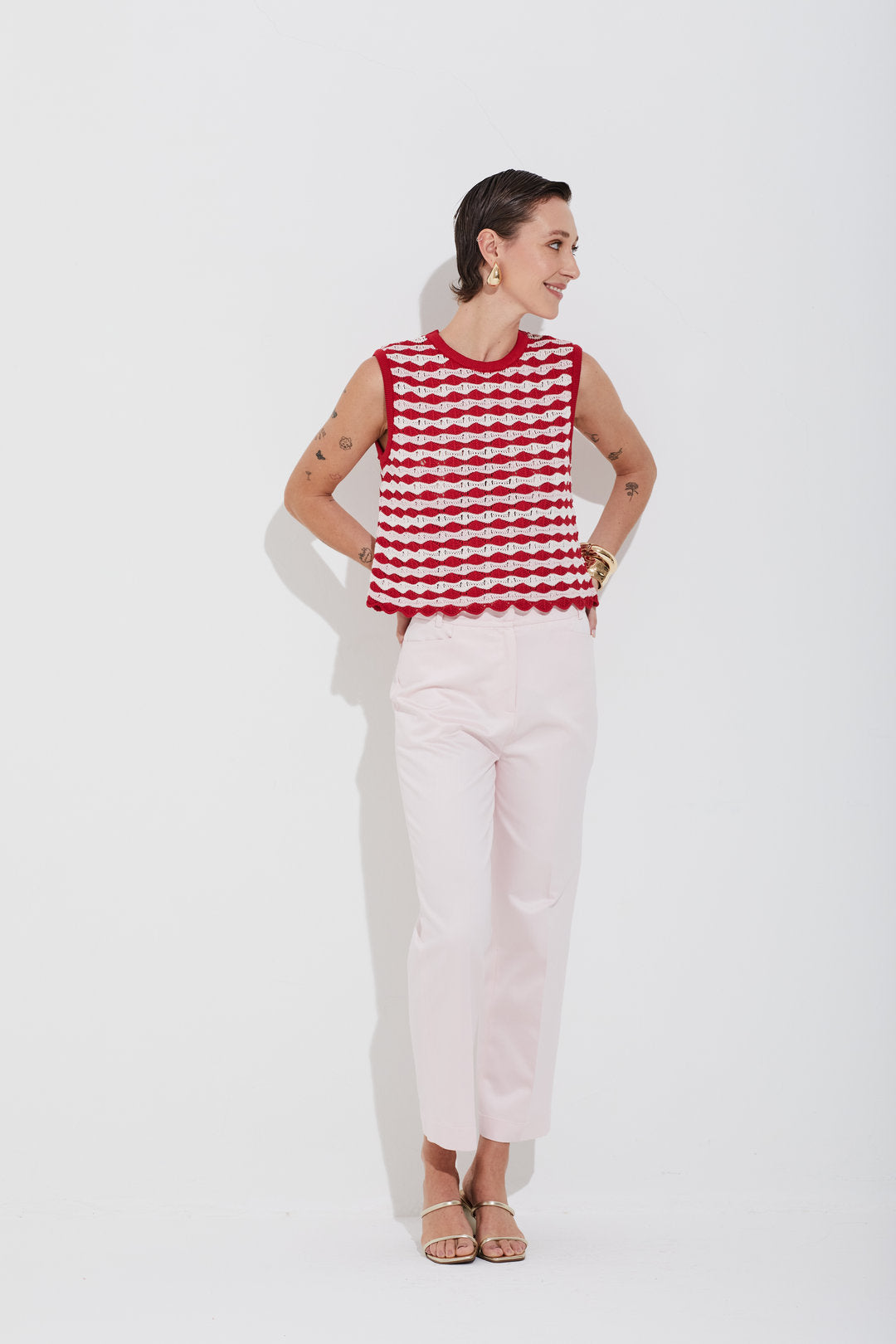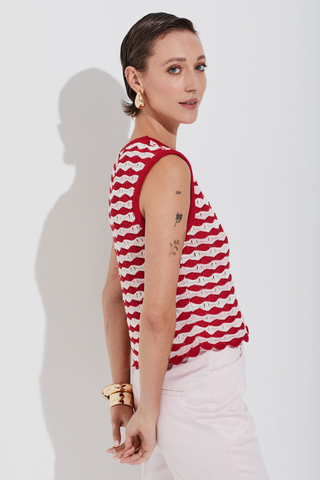 Top Tricot Mix Tons Rendado Multicolor Tomate