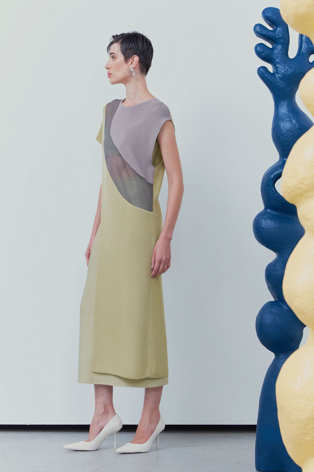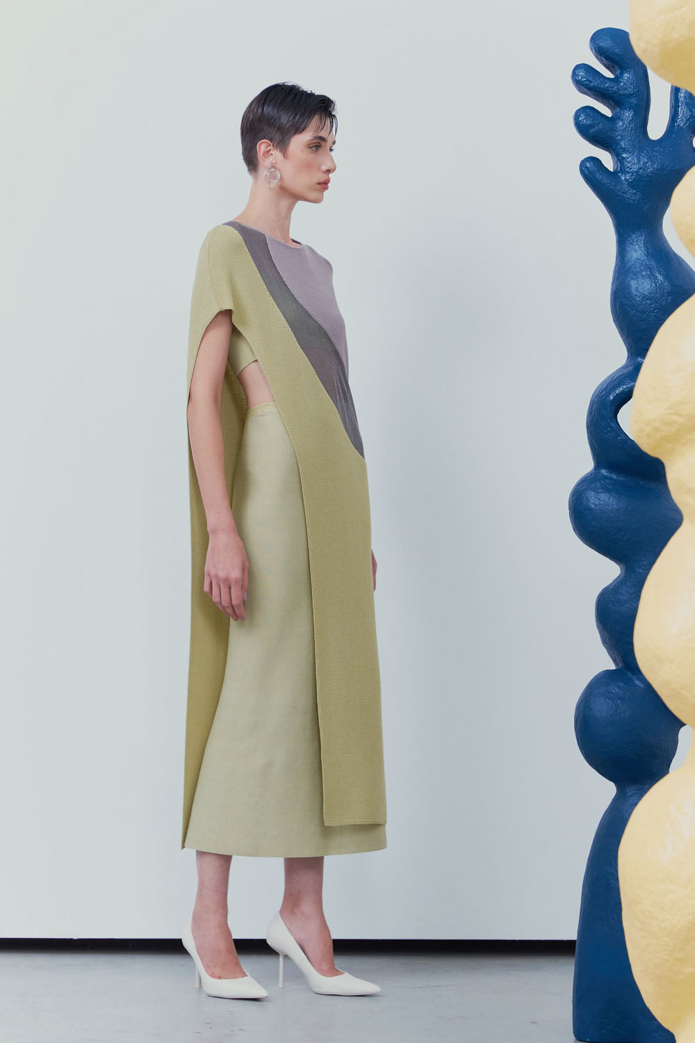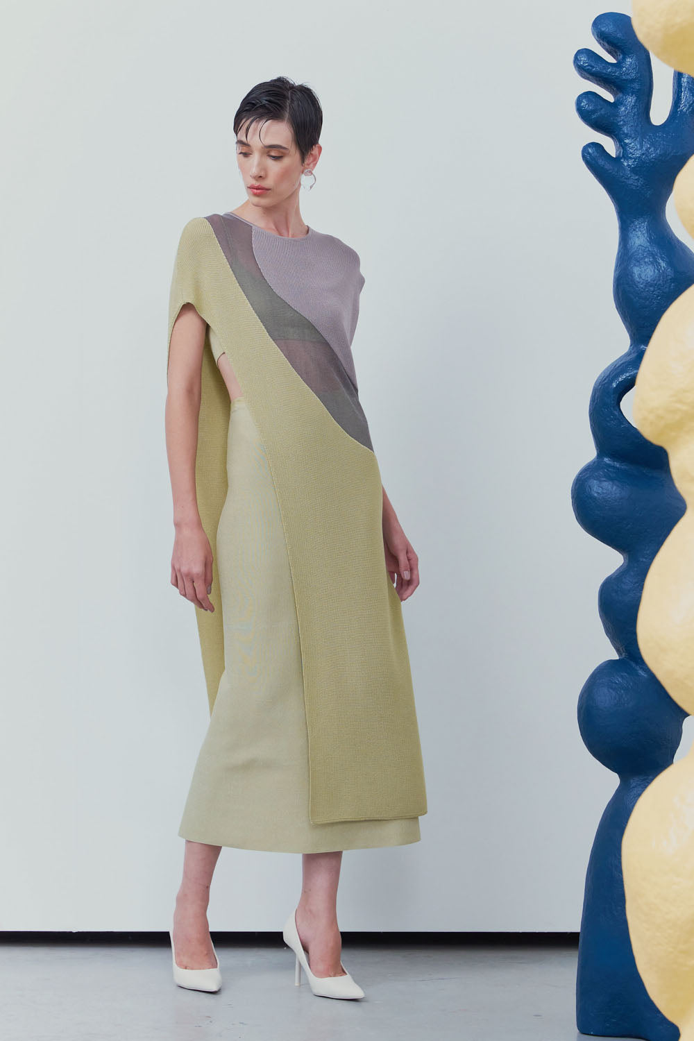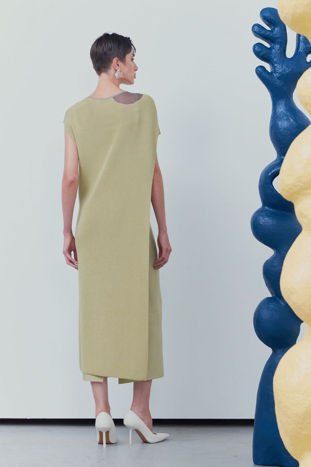 Veste Assimétrica Formas Orgânicas Com Transparencia Em Tricot Avocado