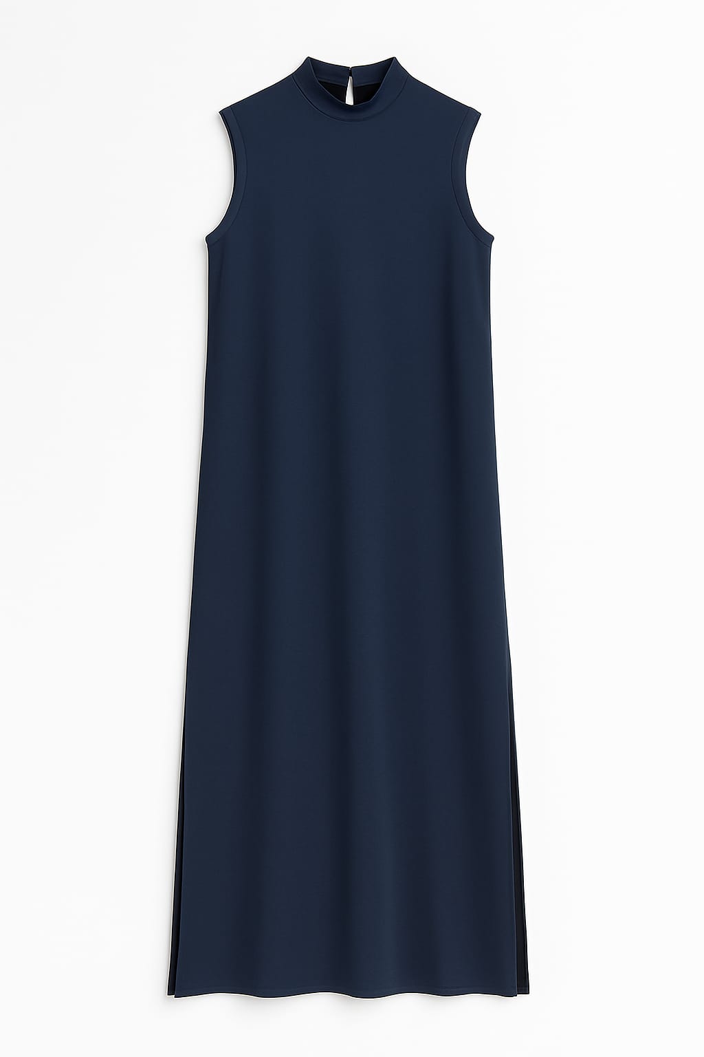 Vestido Em Malha Longo Com Pespontos Gola E Cava Navy Classico
