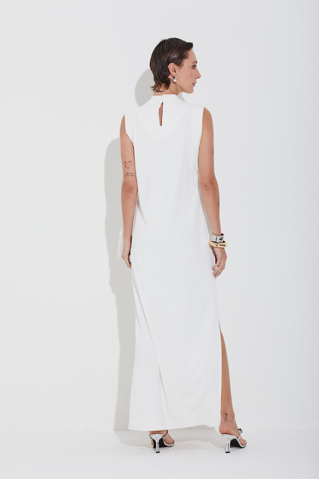 Vestido Em Malha Longo Com Pespontos Gola E Cava Off White