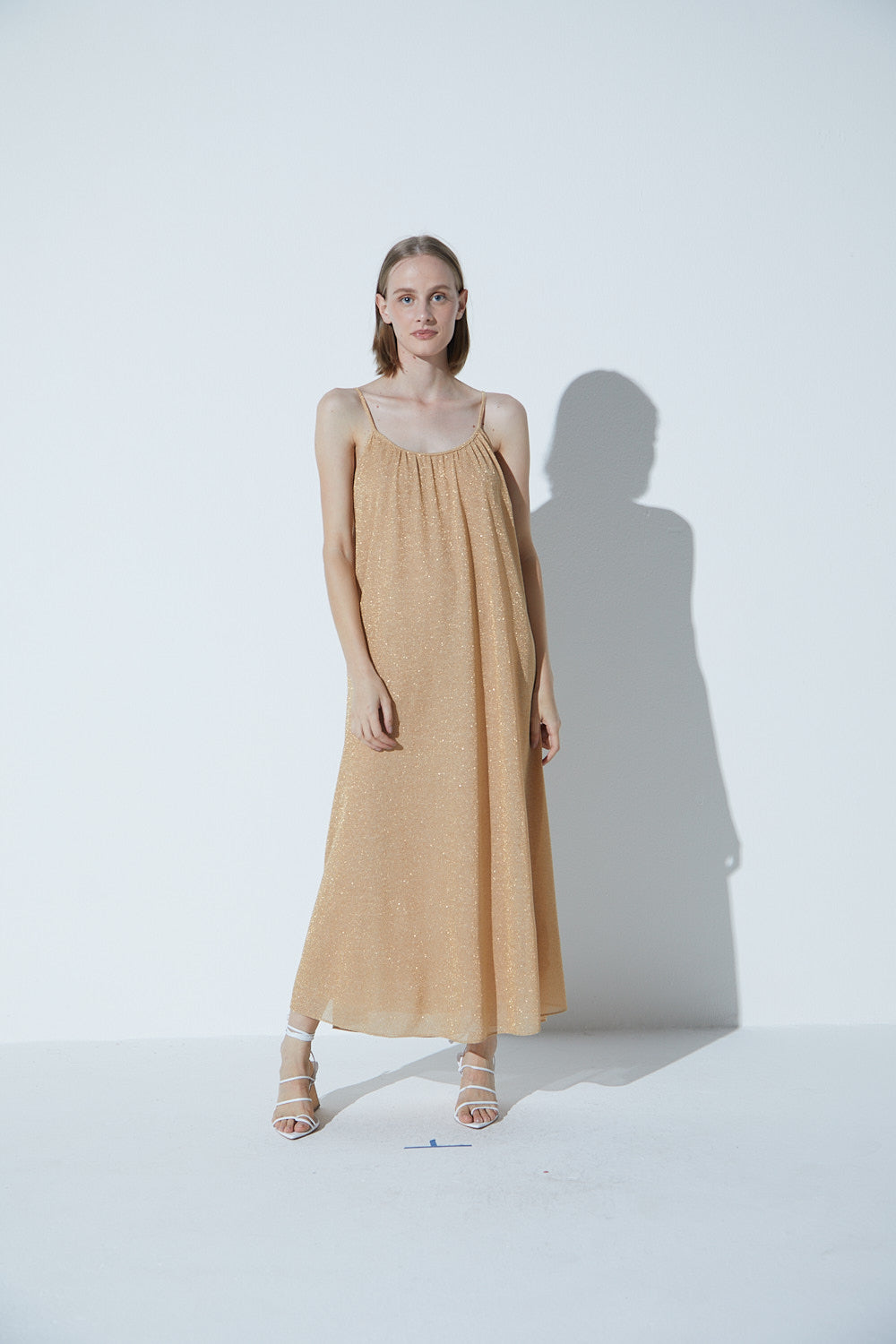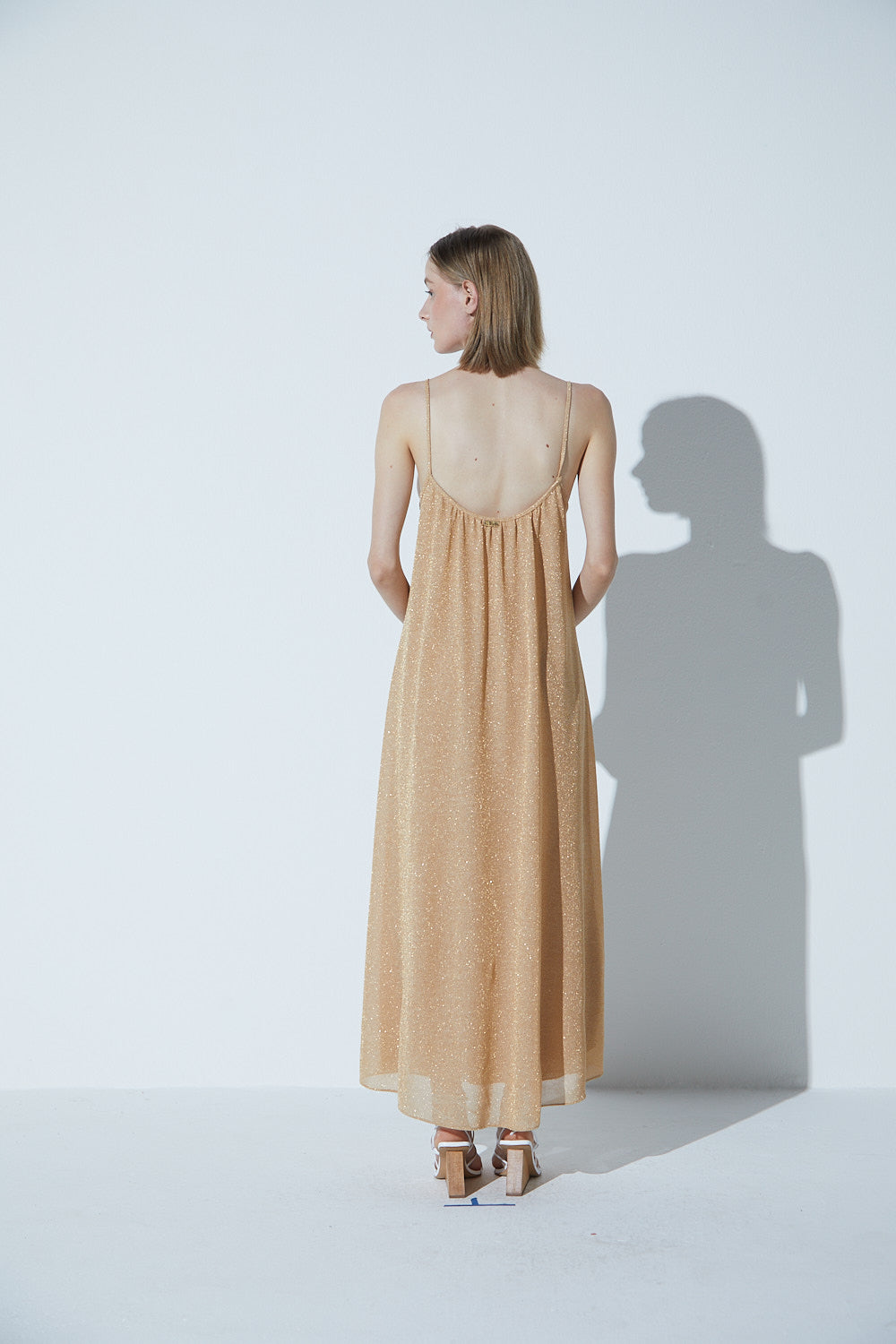 O Vestido Godê Shine é um longo elegante e romântico para qualquer ocasião. Está confeccionado em tecido com fios de lurex que dão o aspecto brilhante e refinado, alças finas, shape rodado que destaca a silhueta esvoaçante e romântica.