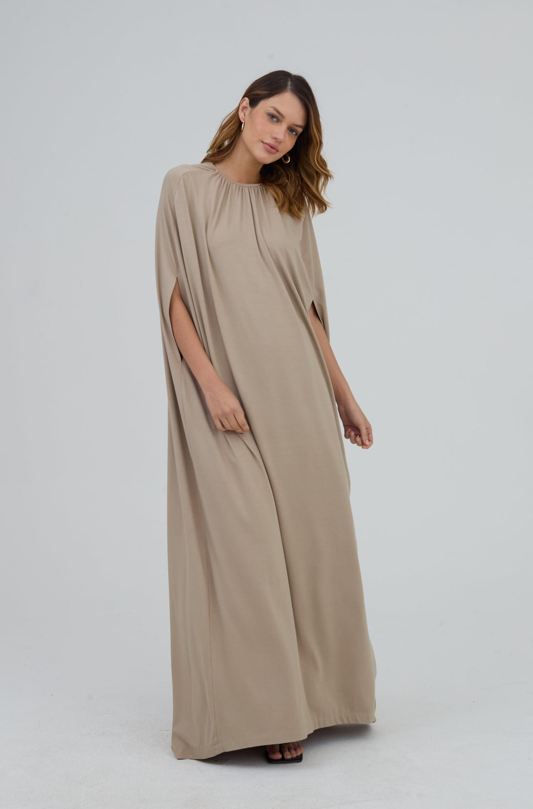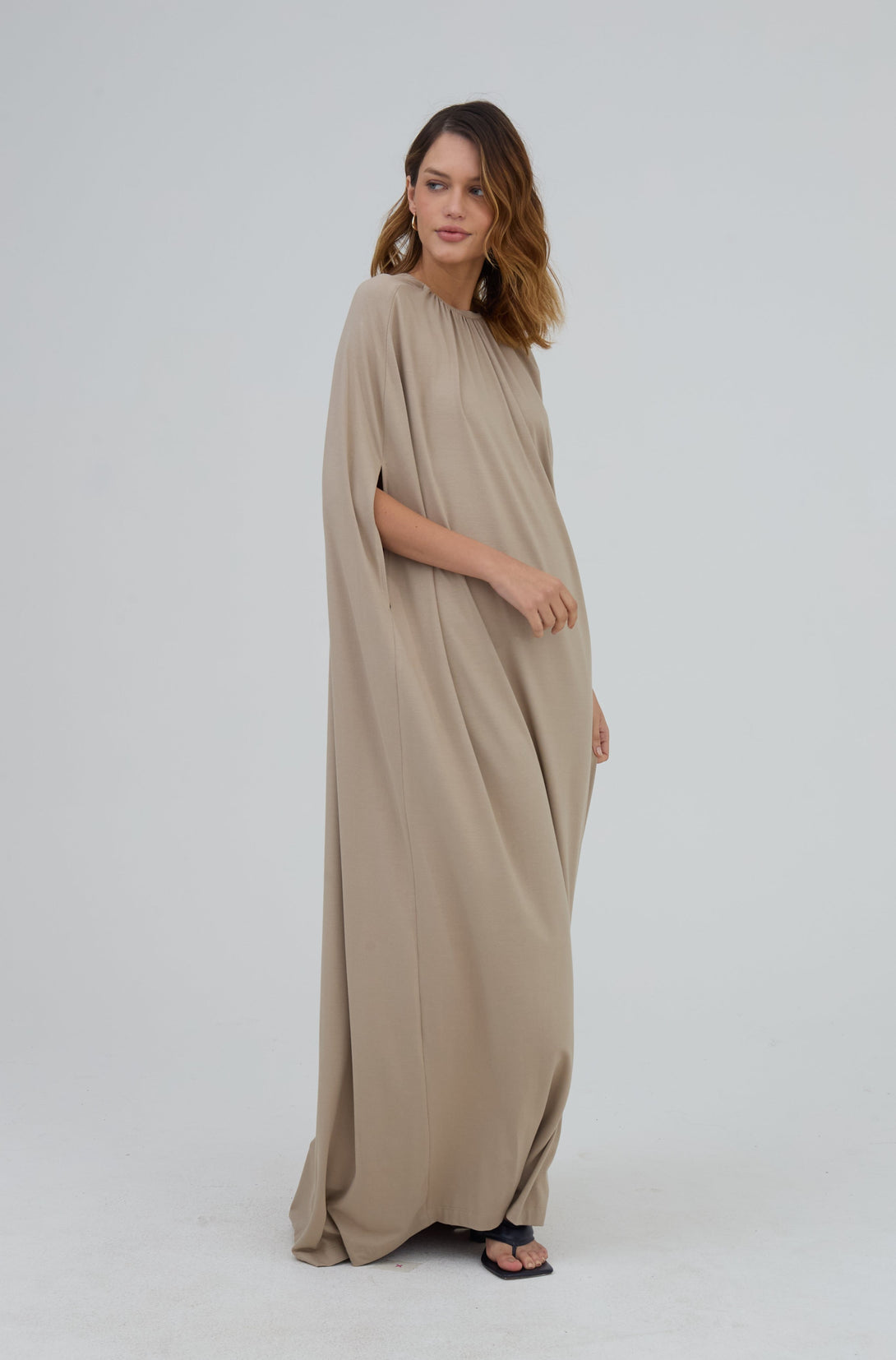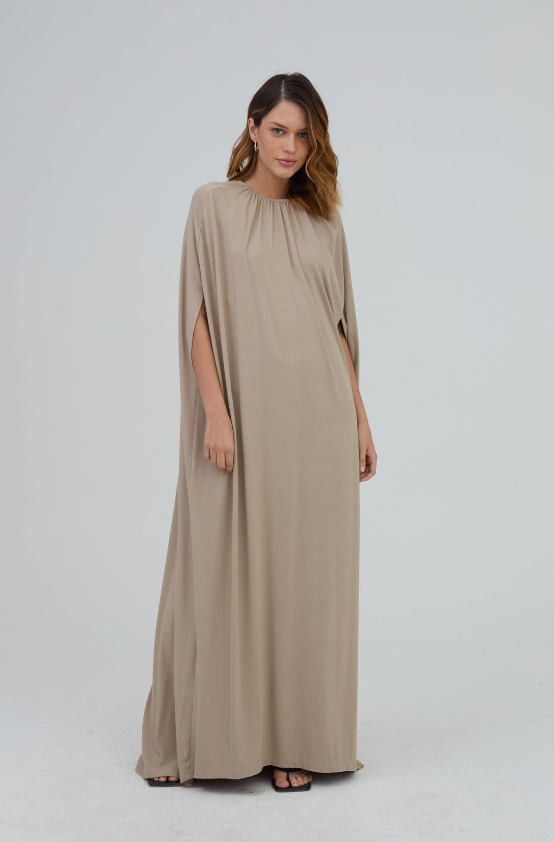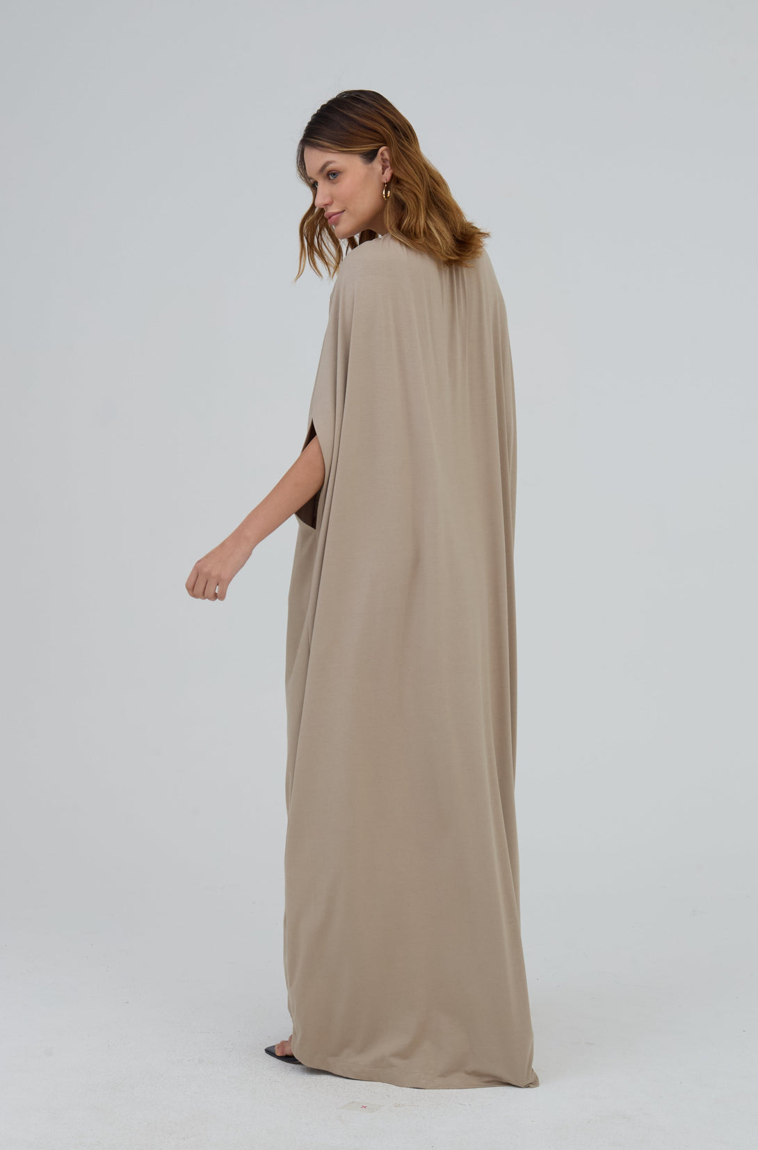 O Vestido Kaftan Longo em Malha é versátil e elegante, possui modelagem solta ao corpo e gola redonda. Perfeito para destacar sua personalidade com conforto e estilo.