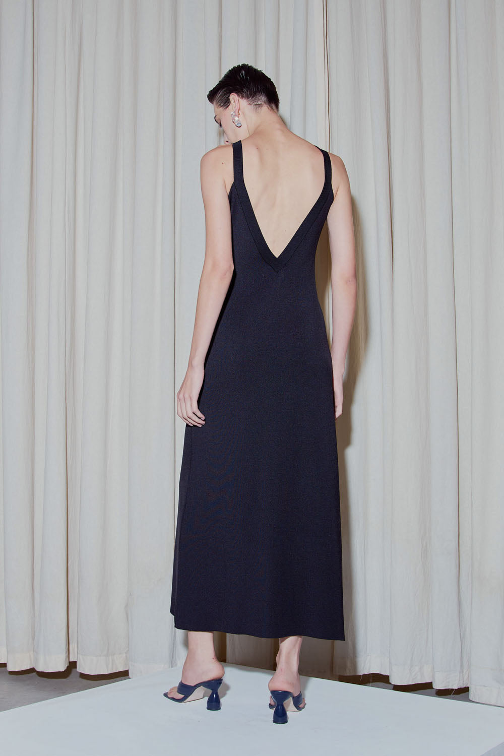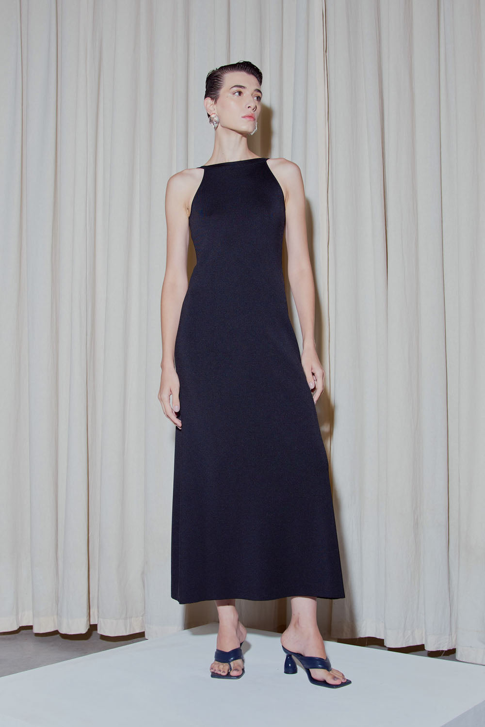 Tecido em fio rayon flex em ponto estruturado, o Vestido Longo Decote Costas possui um shape minimalista e atemporal. A peça tem um lindo decote em V nas costas e silhueta que valoriza o corpo.