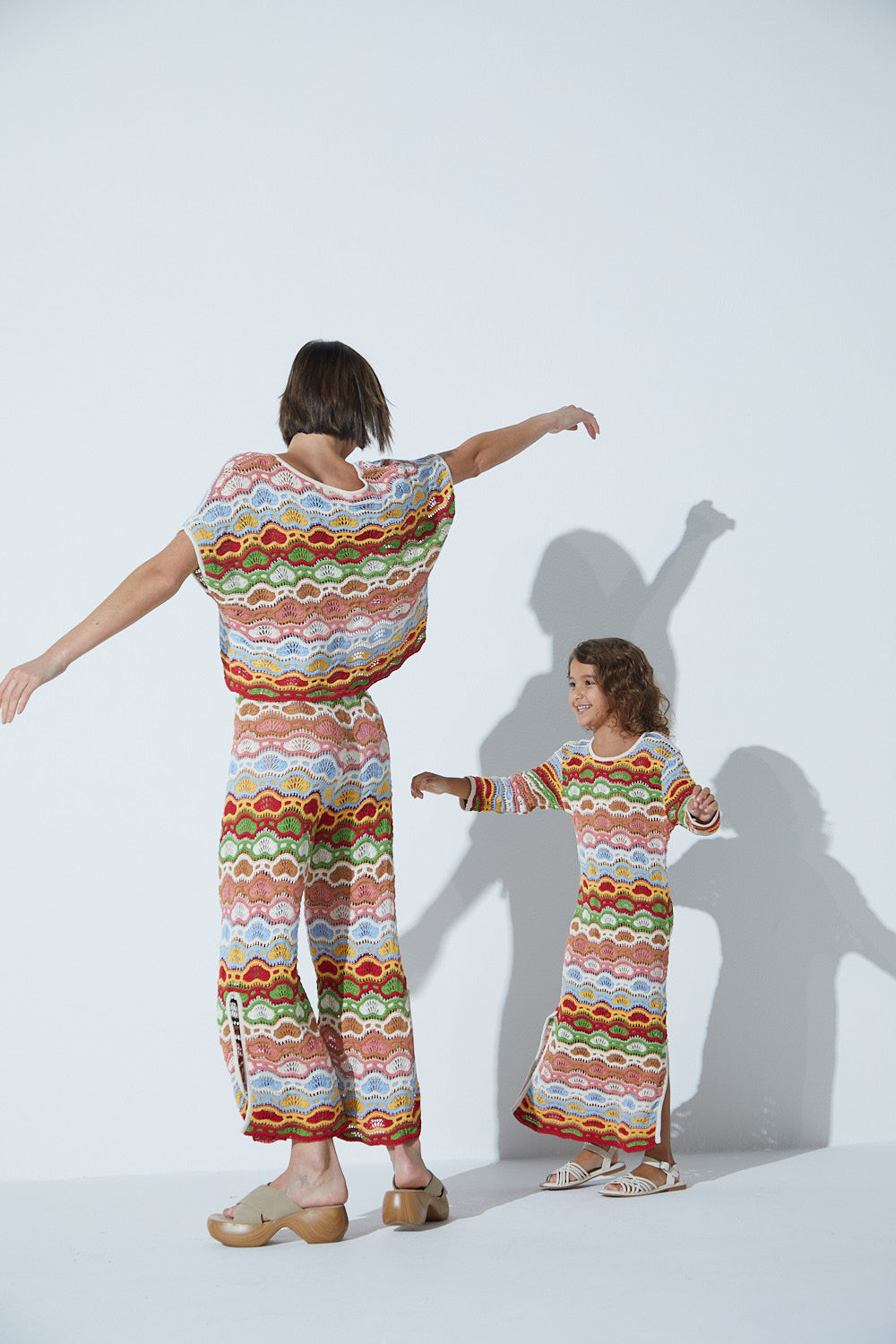 Vestido Longo Infantil Em Tricot Rendado Multicolor