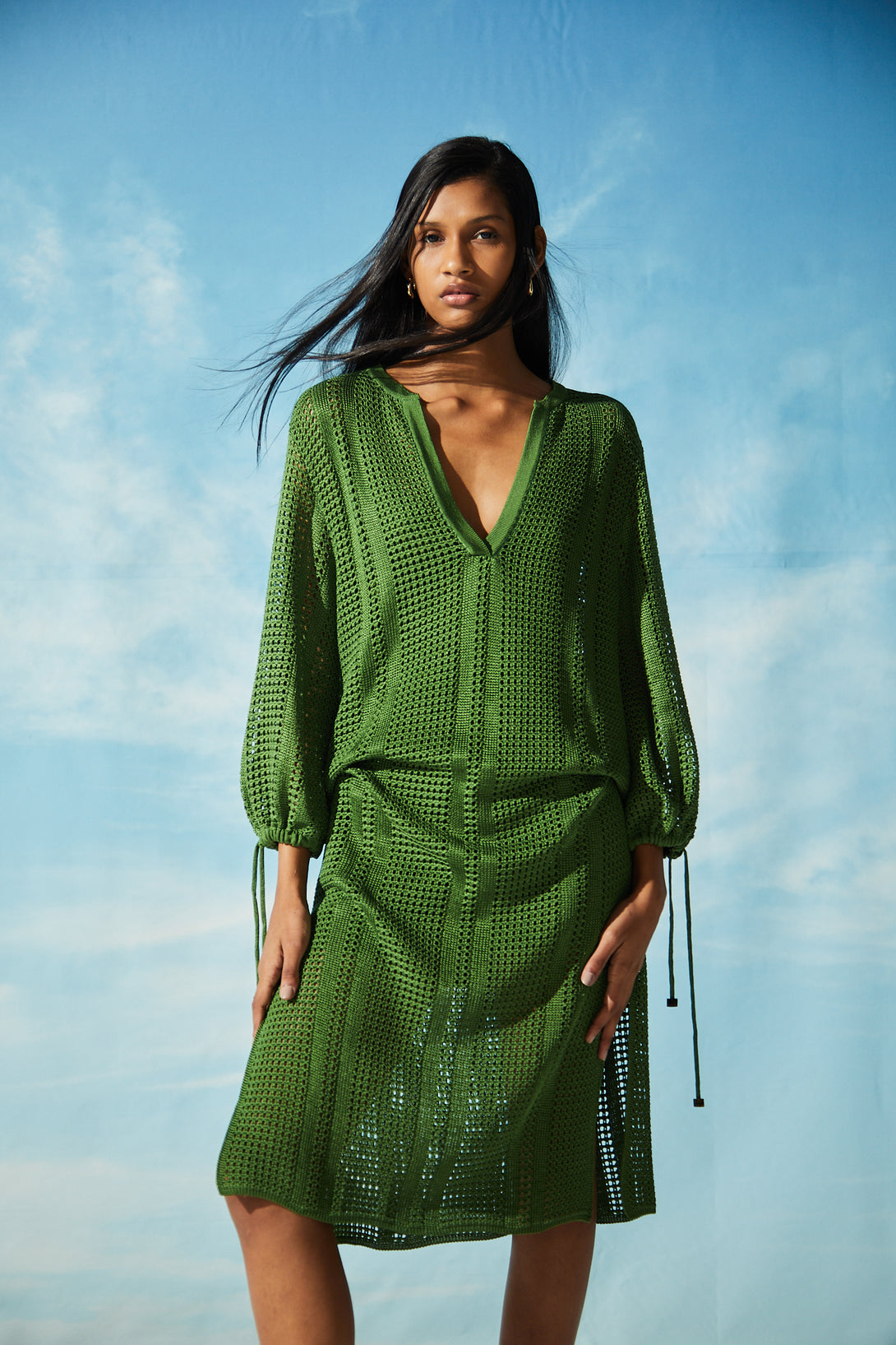 Com decote em V que alonga a silhueta e mangas com amarração ajustável, o modelo entrega versatilidade e estilo atemporal. O comprimento midi reforça a proposta elegante, enquanto o acabamento impecável traduz o DNA da marca: moda premium, confortável e com design autoral.