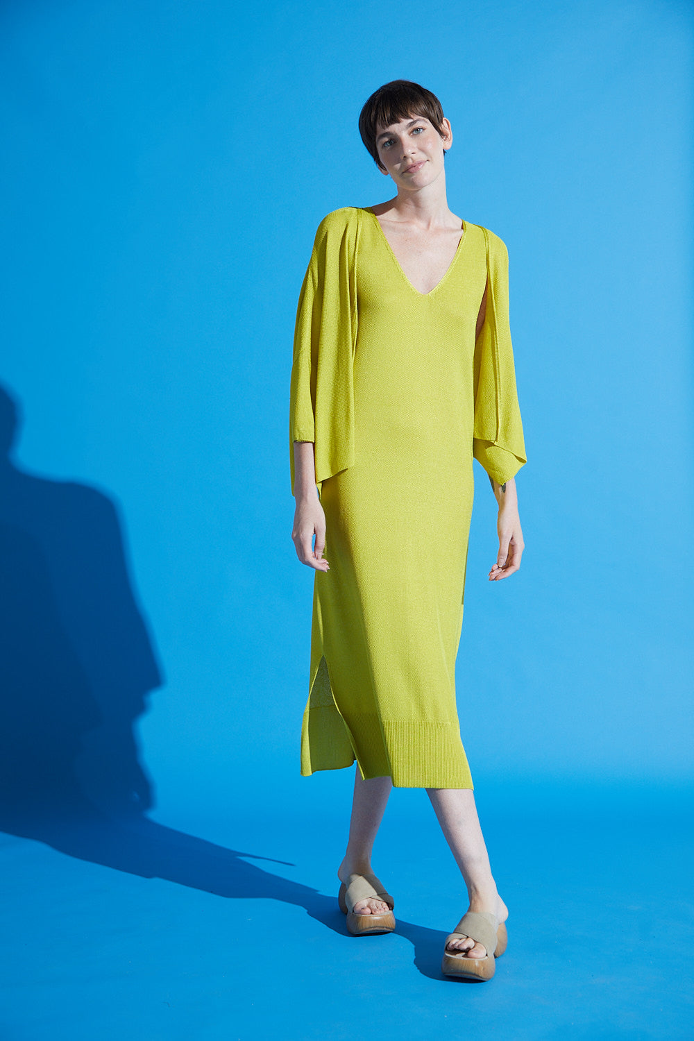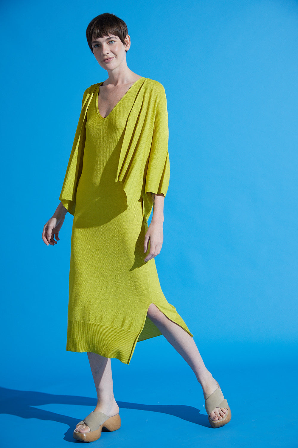Vestido Midi Em Tricot Decote V Maçã Verde