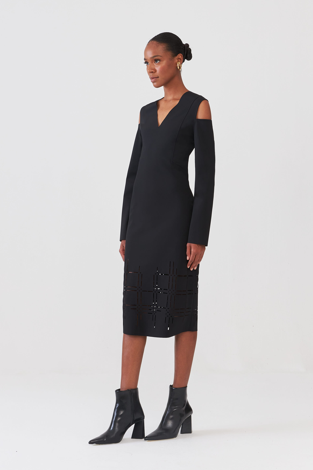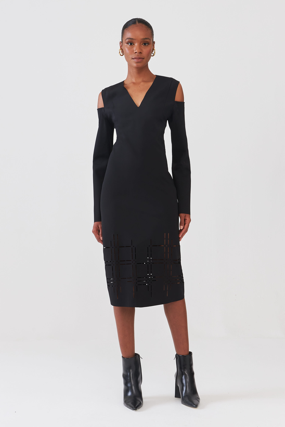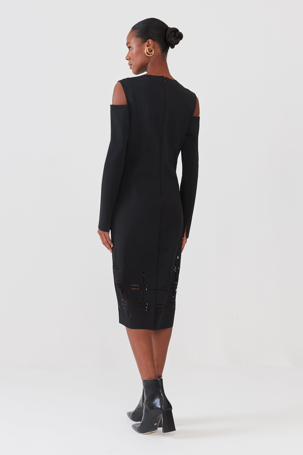 O Vestido Midi Decote V Em Bock Laser é perfeito para qualquer ocasião. Seu decote V valoriza o colo e o corte midi traz elegância e conforto. Os recortes feitos a  laser conferem um toque moderno e sofisticado ao look. Com esse vestido, você estará sempre bem vestida e confiante!