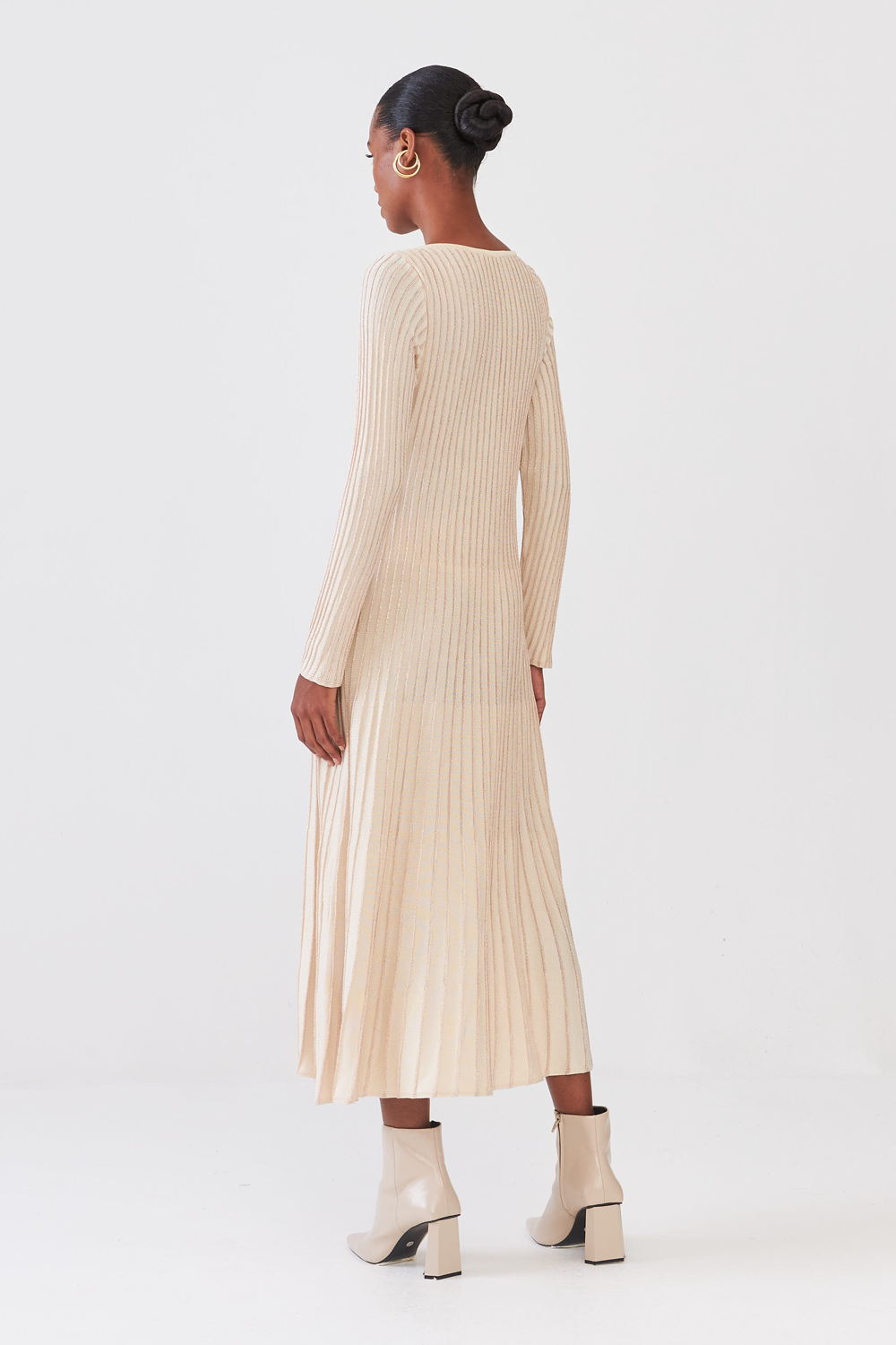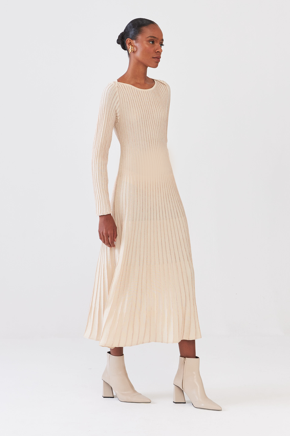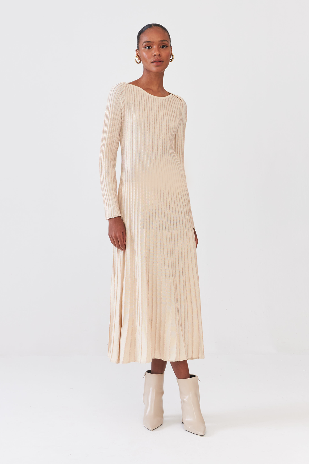 Vestido Midi Em Tricot Nervurado
