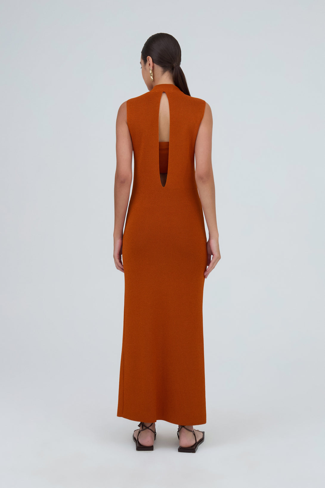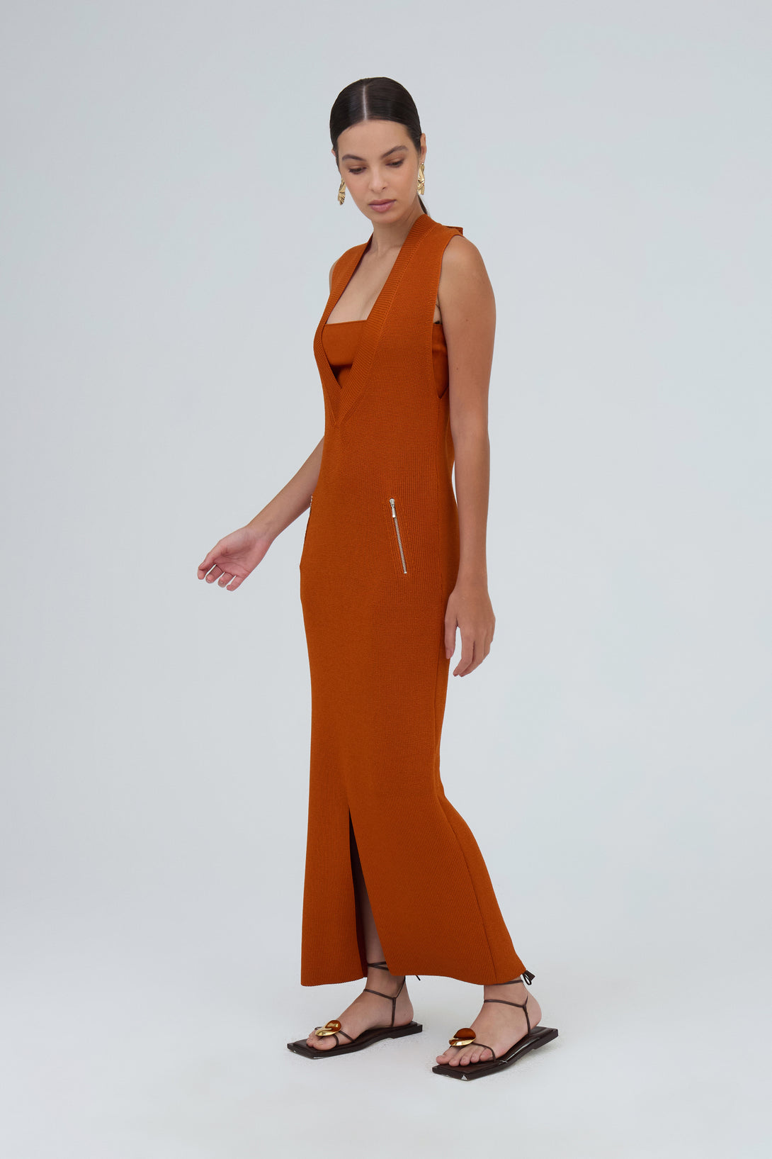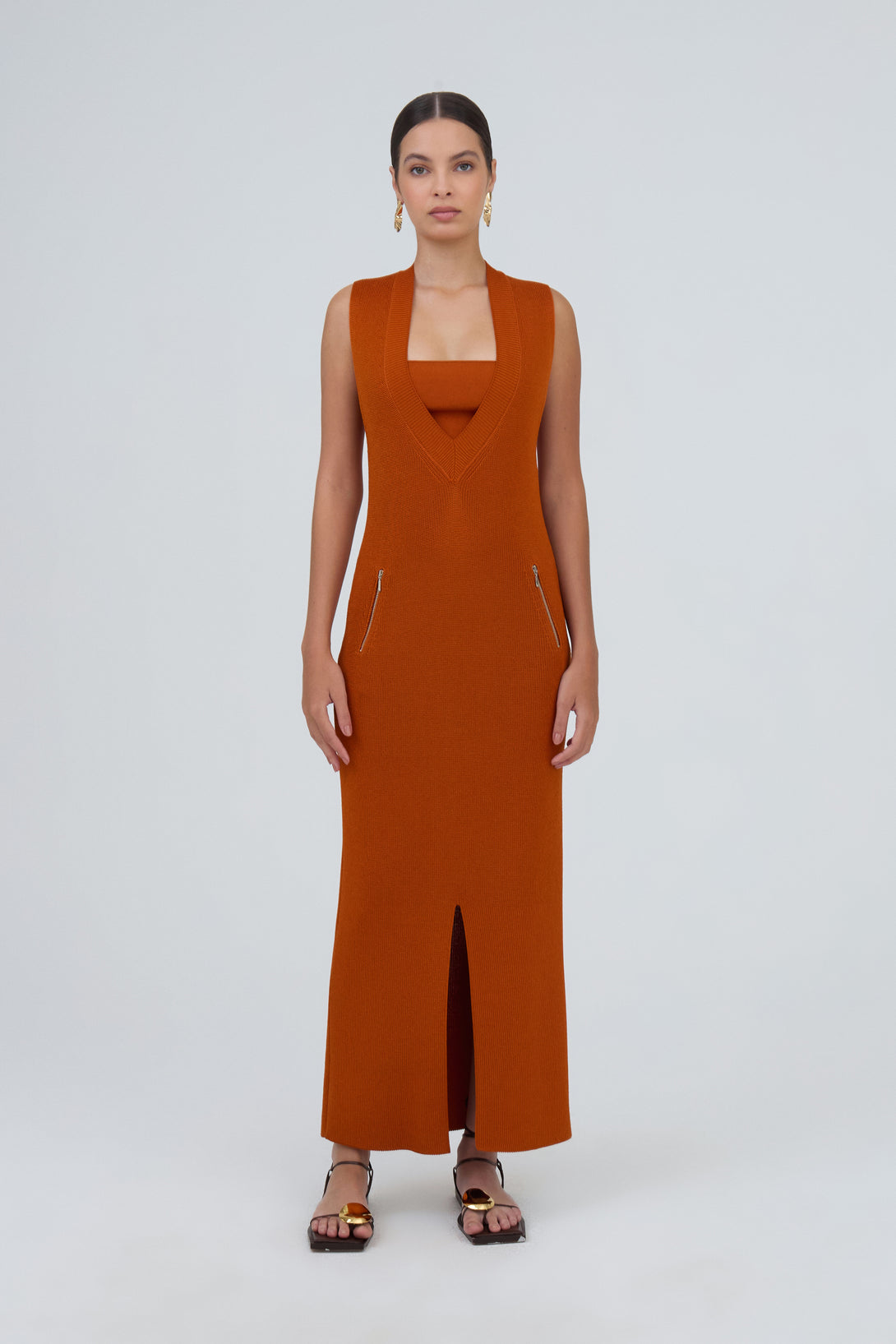 Vestido Midi Reto Detalhe Ziper Com Top Em Tricot Abóbora
