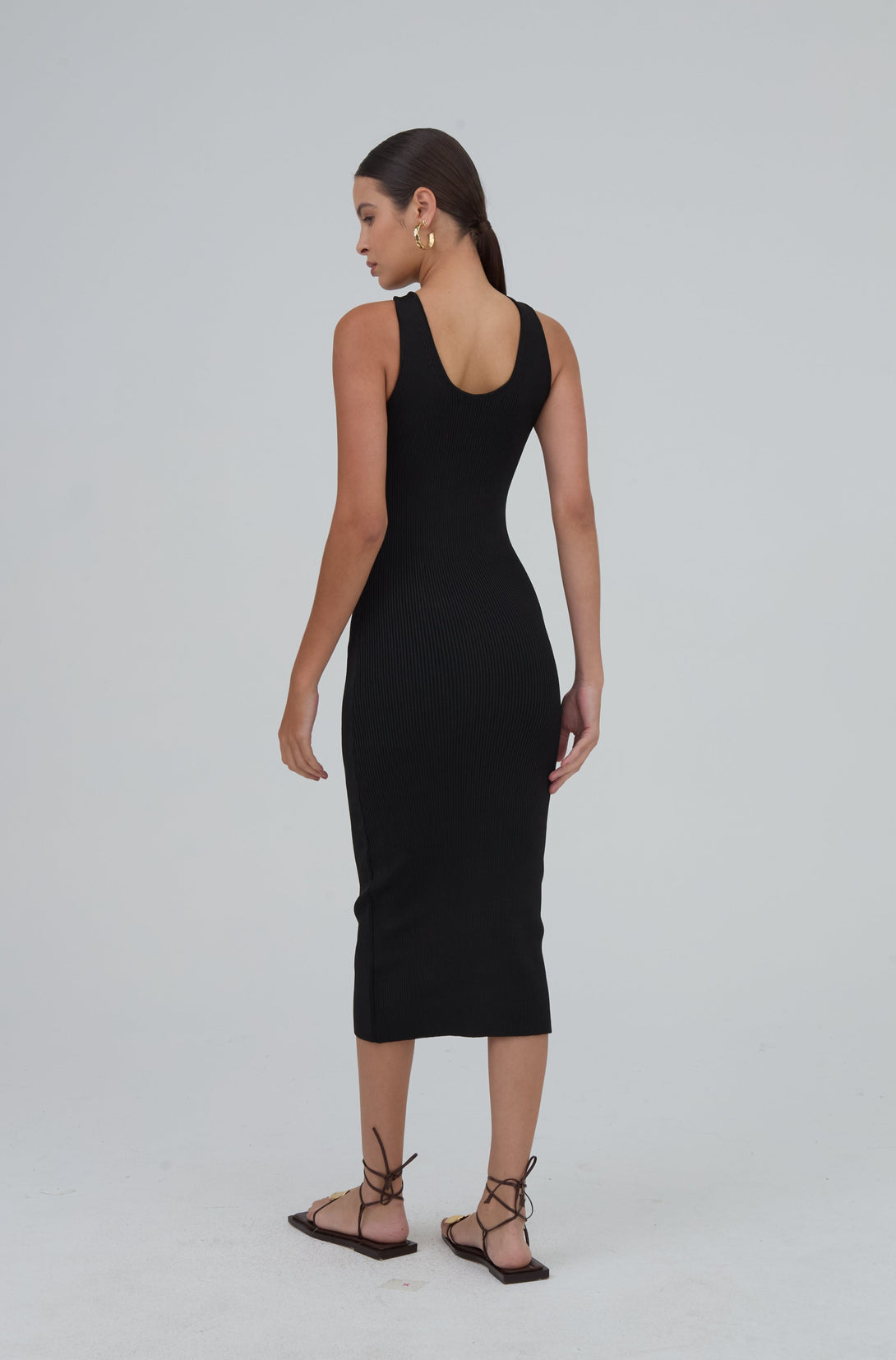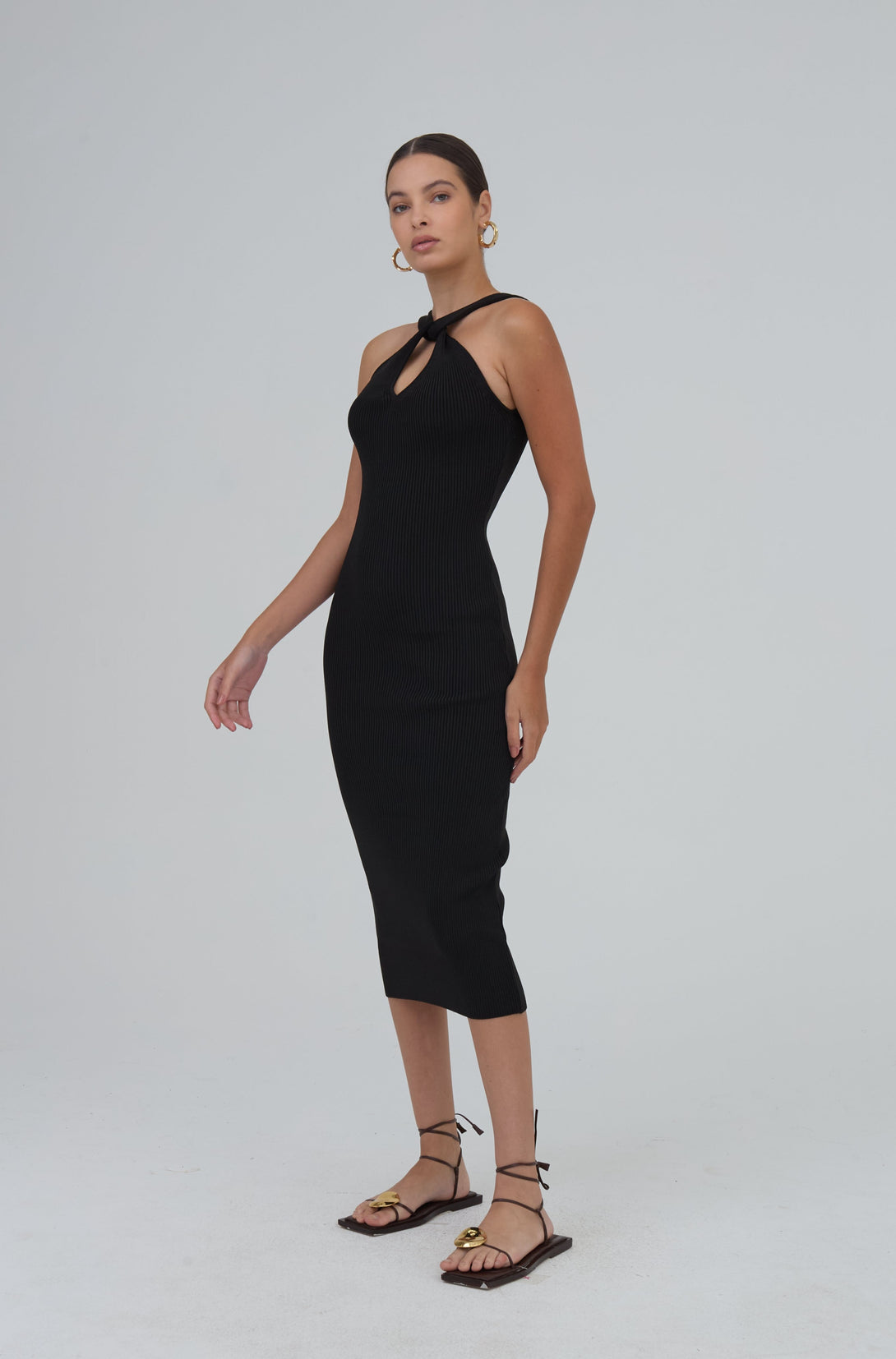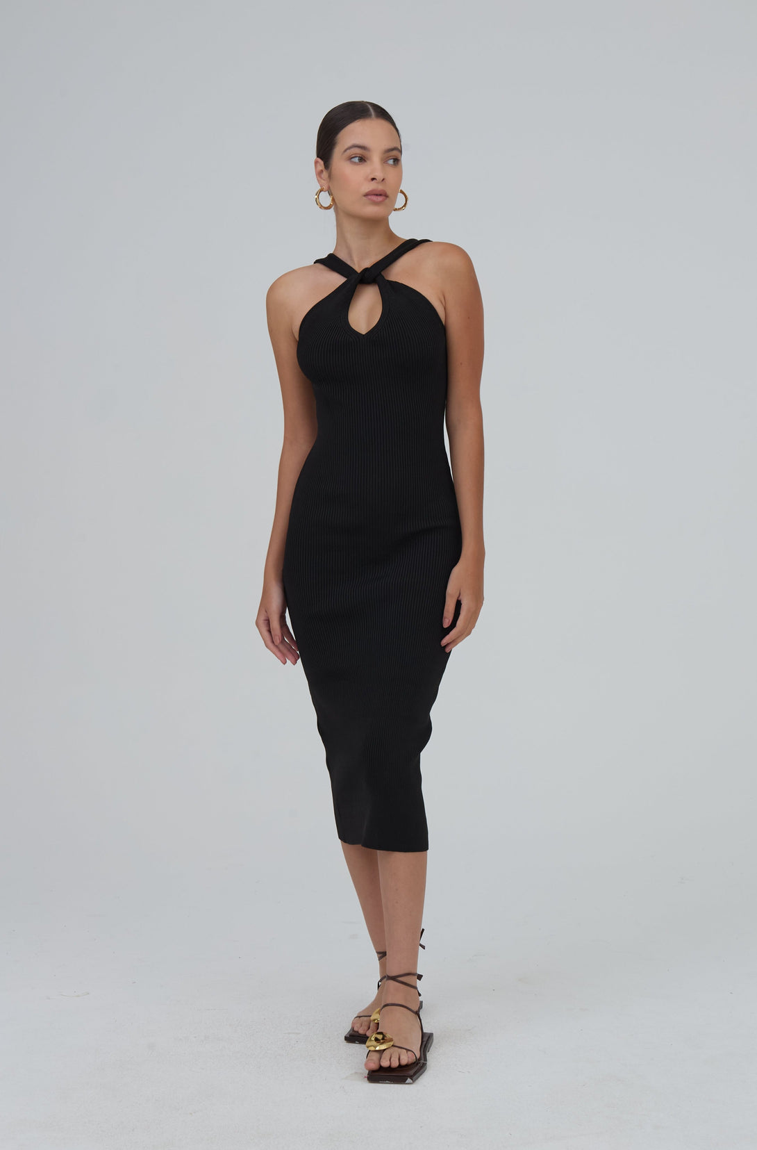 Vestido Midi Tubo Detalhe Torção Em Tricot Preto