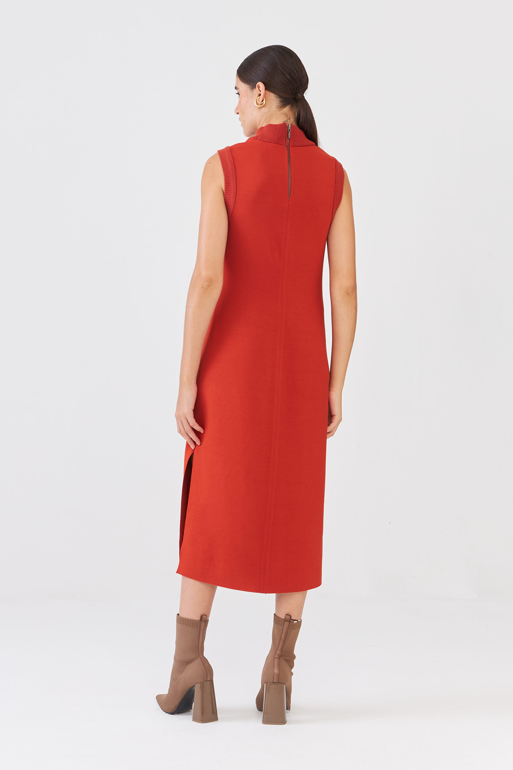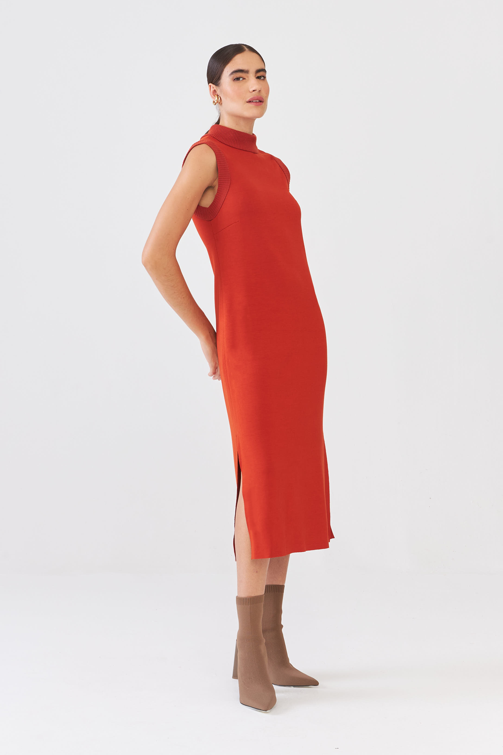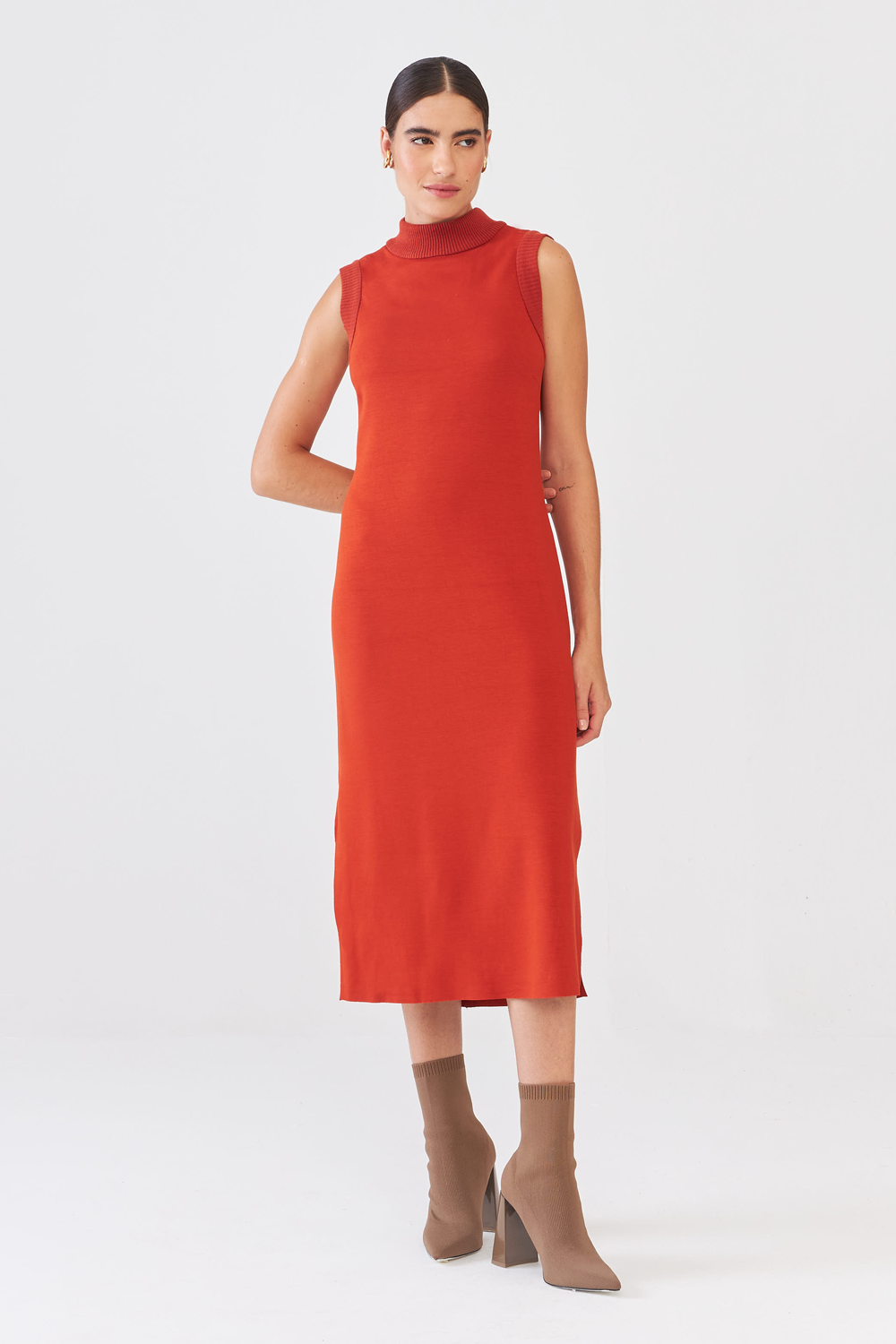 Com este elegante vestido regata, você estará pronta para qualquer ocasião. Feito em malha suave e confortável, o vestido possui gola alta, que adiciona um toque de sofisticação ao look. Disponível na linda cor Citrino, o vestido é perfeito para um visual moderno e versátil.