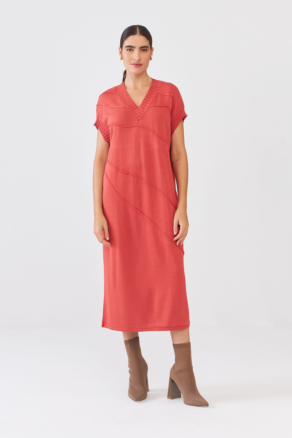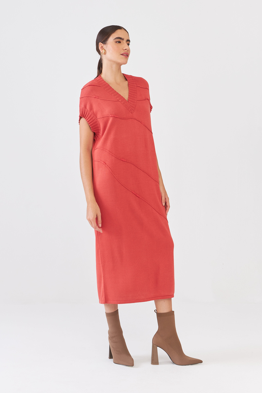 Vestido Reto Detalhe Bordado Em Tricot Sienna C/ Bordado
