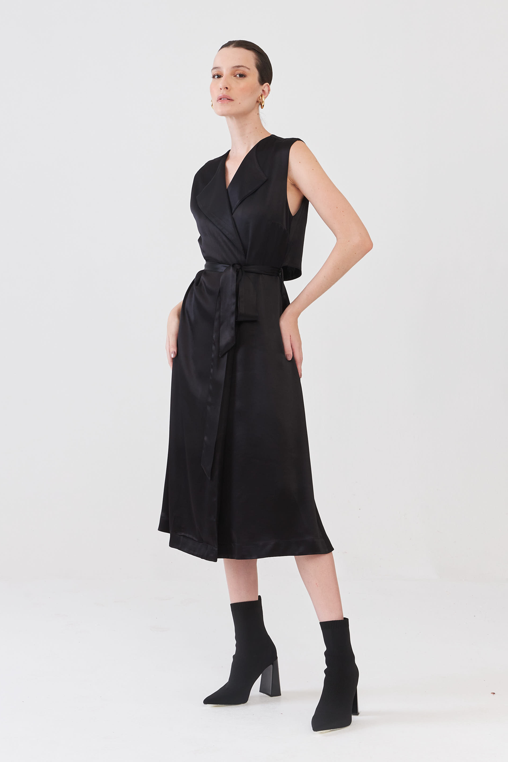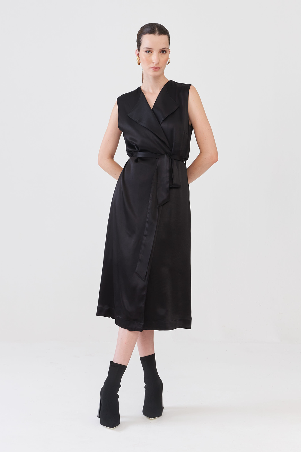 Com seu design atemporal e detalhes clássicos, este vestido é perfeito para qualquer ocasião. Seu caimento perfeito e acabamento impecável irá garantir um toque a mais de elegância e sofisticação ao seu visual.