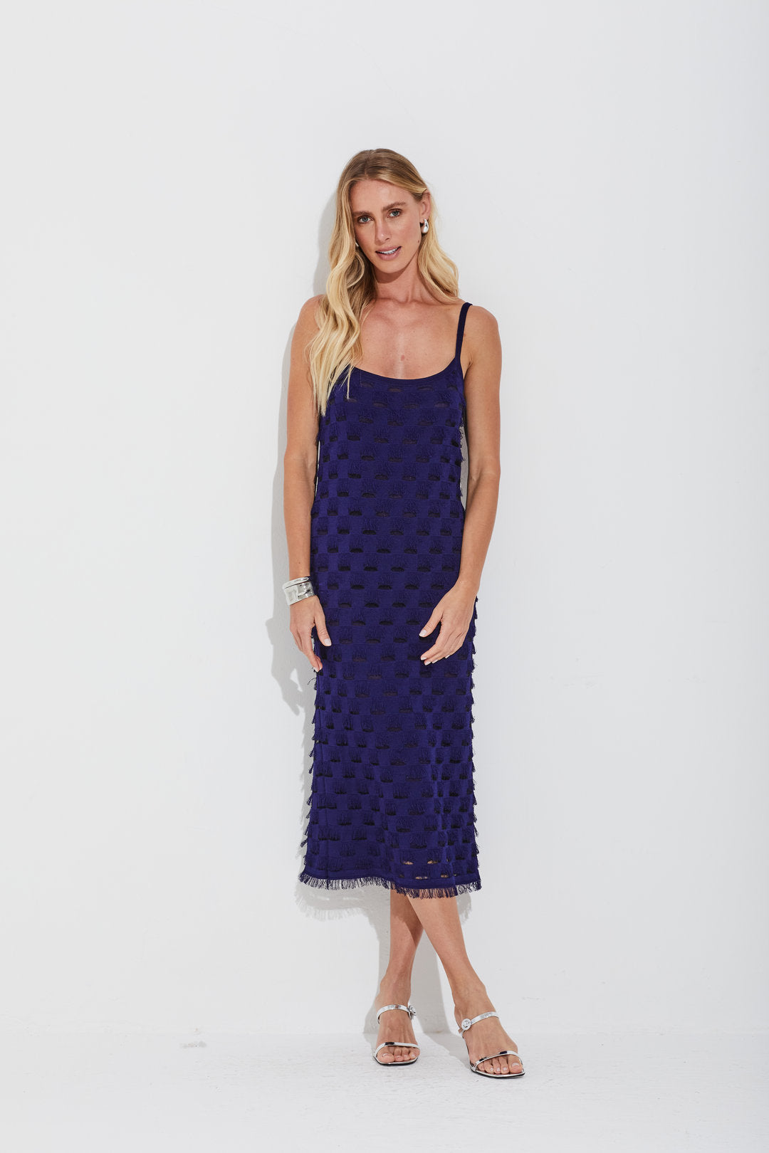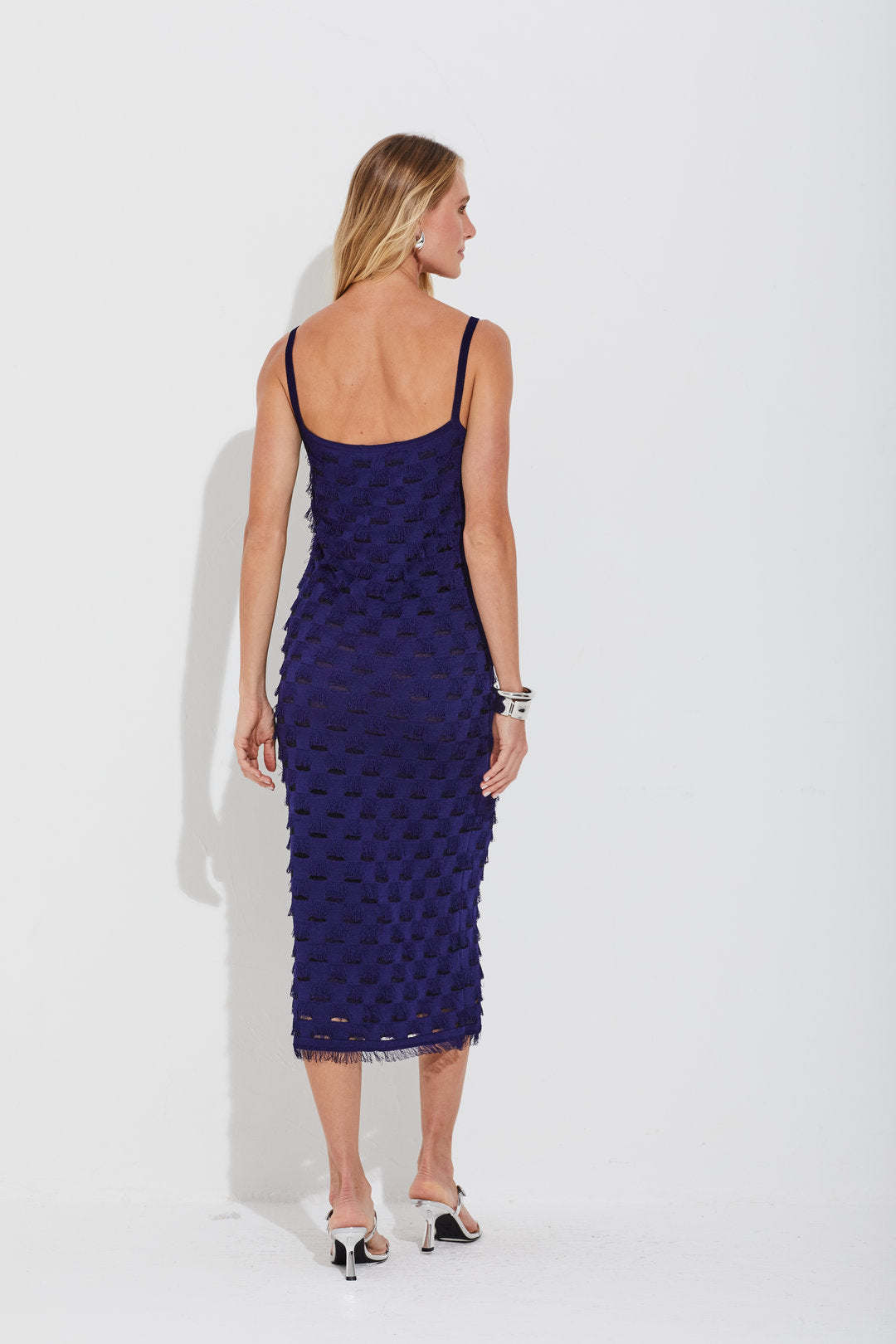 Vestido Tricot Detalhes Geométricos Com Franjas Mistic Blue