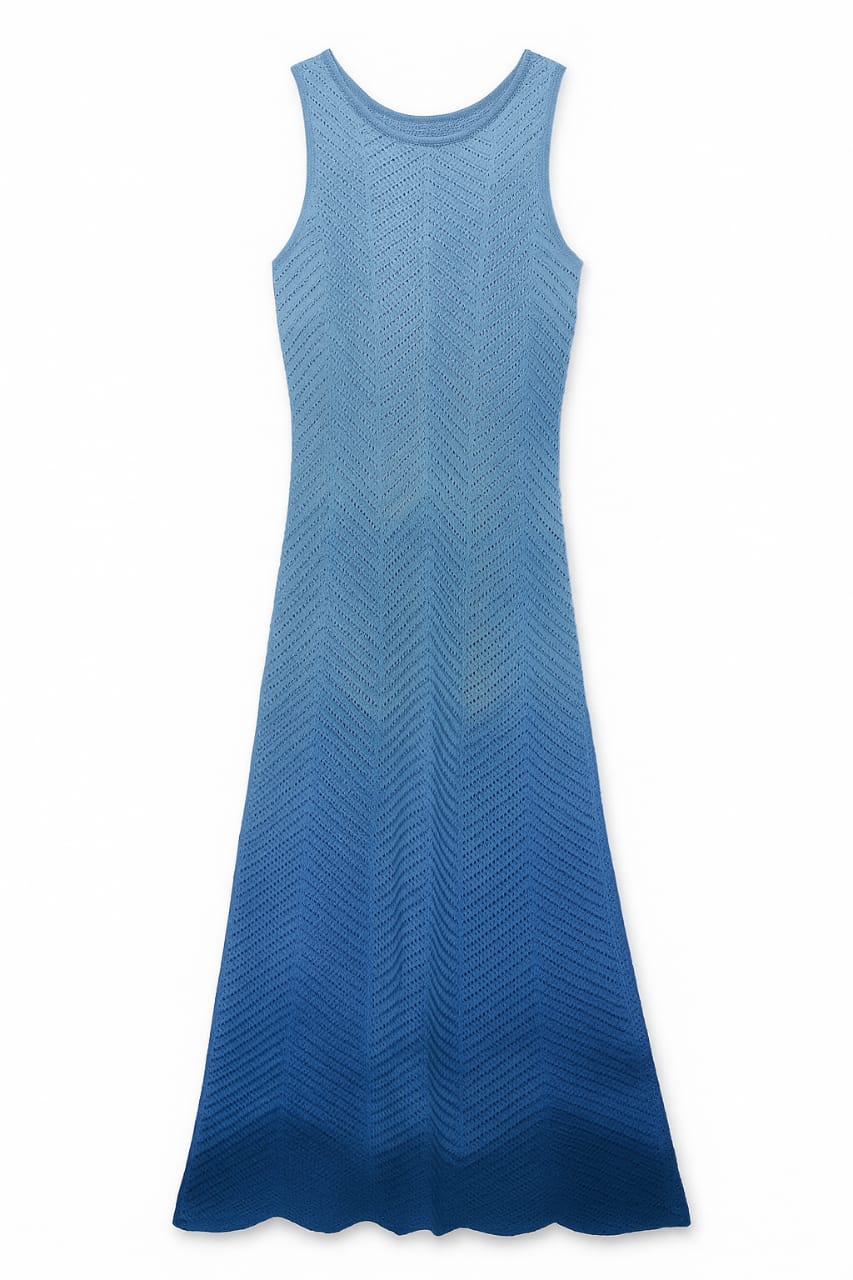Vestido Tricot Tie Dye Degradê Azul